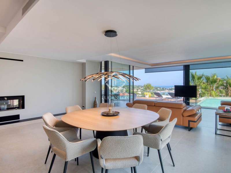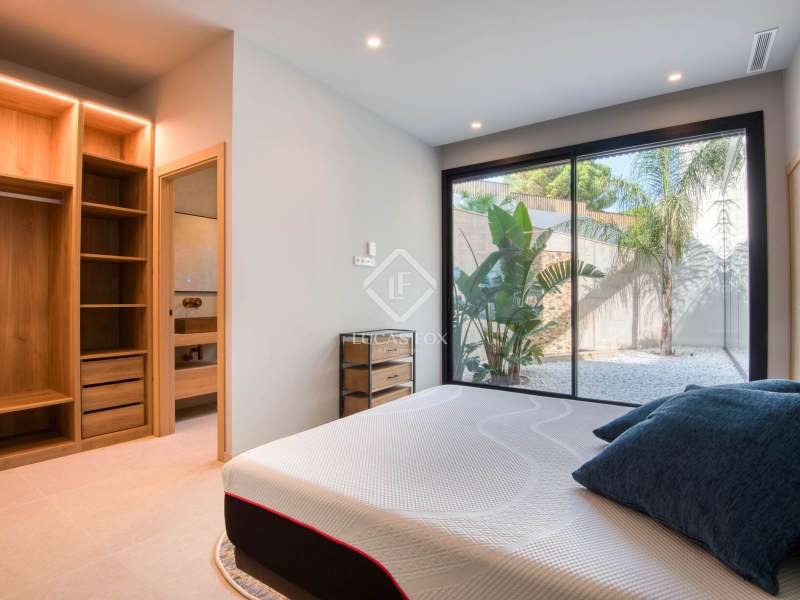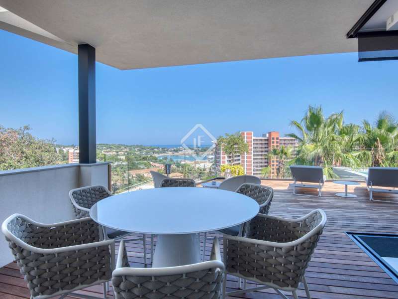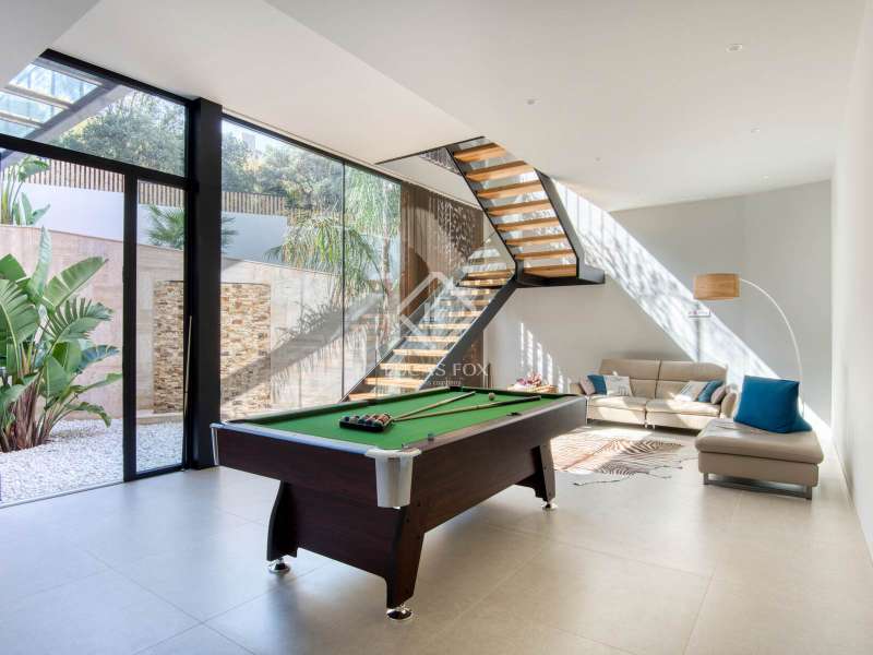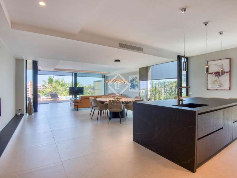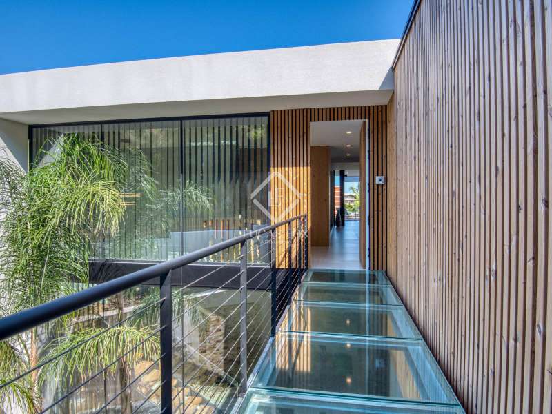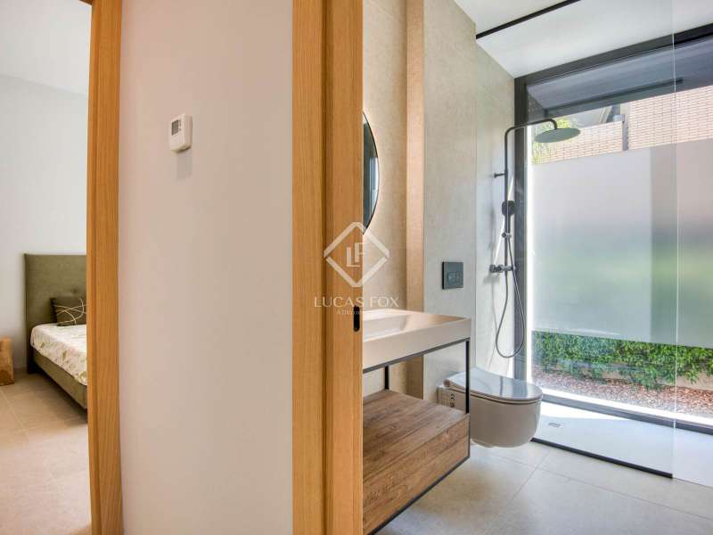 Villa Emma is a new build house with a modern style in the middle of the construction phase in S'Agaró. The property has an area of 500 m² built on a 690 m² plot . The property has high ceilings and is distributed over two floors. We enter through the main entrance, next to a large garage for two cars. On this floor we find the day area with a entrance hall and a guest toilet, followed by a spacious living-dining room with fireplace and a fully equipped open-plan kitchen. The kitchen has a central island and leads to the 80 m² living-dining room with large windows that access to the pool and terrace. The floor is completed with a double bedroom with its private bathroom bathroom with Italian shower of about 32 m². We go down the stairs to the ground floor to access the night area where we find a 39 m² multipurpose room that could be used as an additional living room . Next, there is a first double bedroom of about 28 m² with its private bathroom with bathtub and a second double bedroom of about 20 m² with its private bathroom with Italian shower. This floor also has two double bedrooms of 15 m² that share a double bathroom with a shower. Finally, there is a laundry room room of about 13 m² and a gym room of about 16 m² that leads to the terrace and the garden. Exterior, there is a salt chlorination pool with an area of about 26 m², as well as an exterior terrace with its summer kitchen, perfect for barbecues with sea views. The entire house has underfloor heating and a reversible duct air conditioning system. There is the possibility of installing a lift. The house will be equipped with solar panels, porcelain interior floors and teak wood terrace floors. The villa has a modern cream-white style with some parts clad in heat-treated wooden slats such as the main entrance and the garage. The completion of the work is scheduled for summer 2025. Do not hesitate to contact us to arrange a visit or request more information.