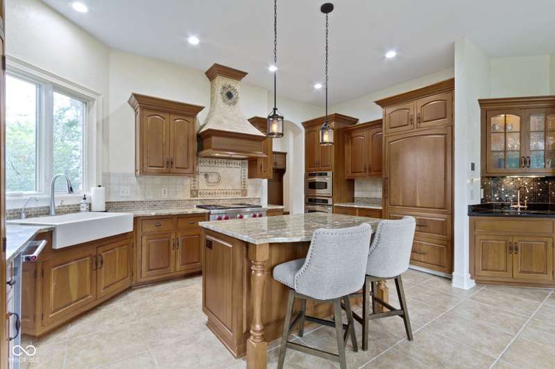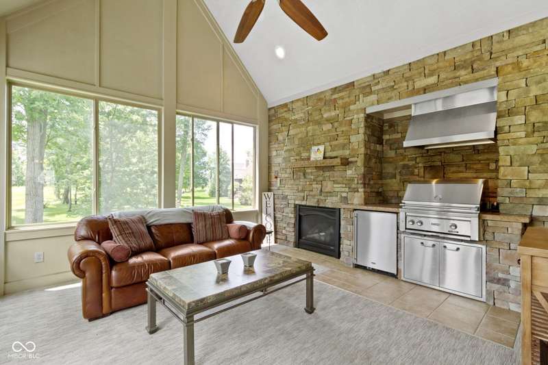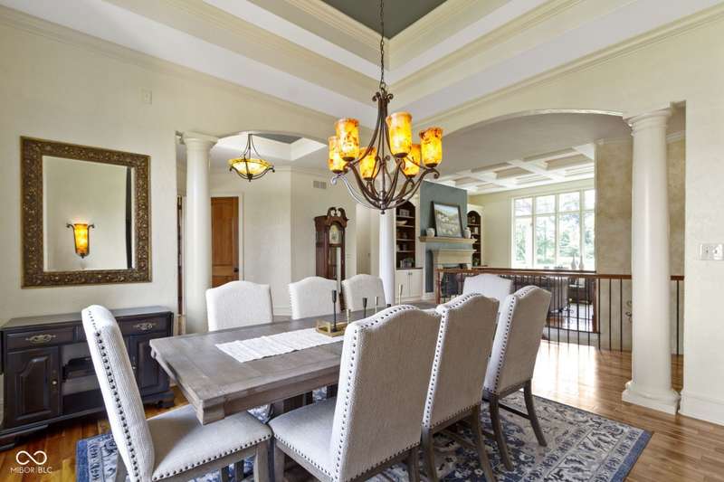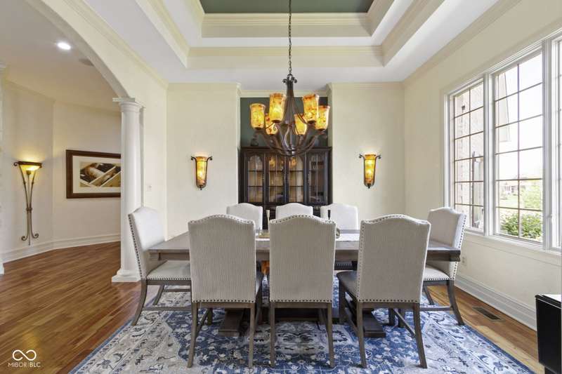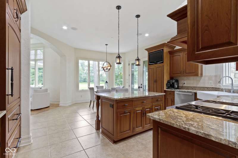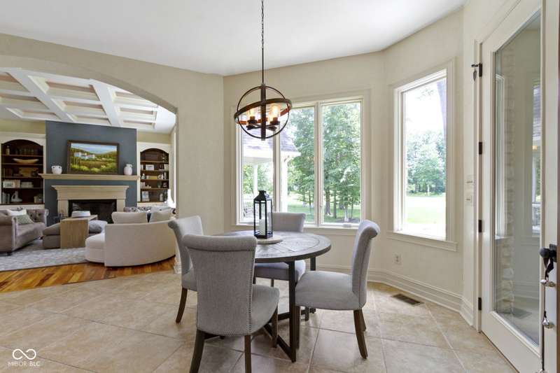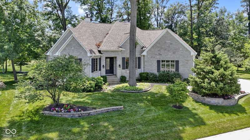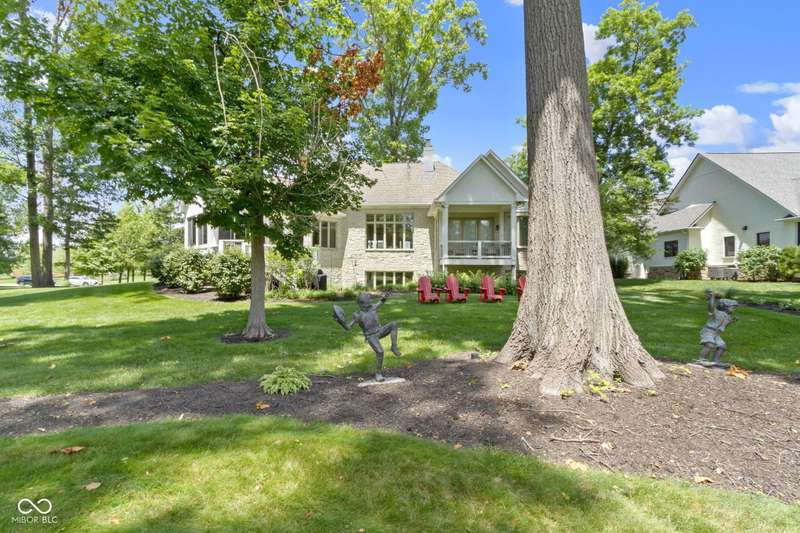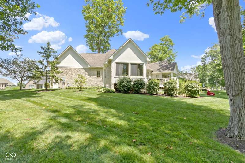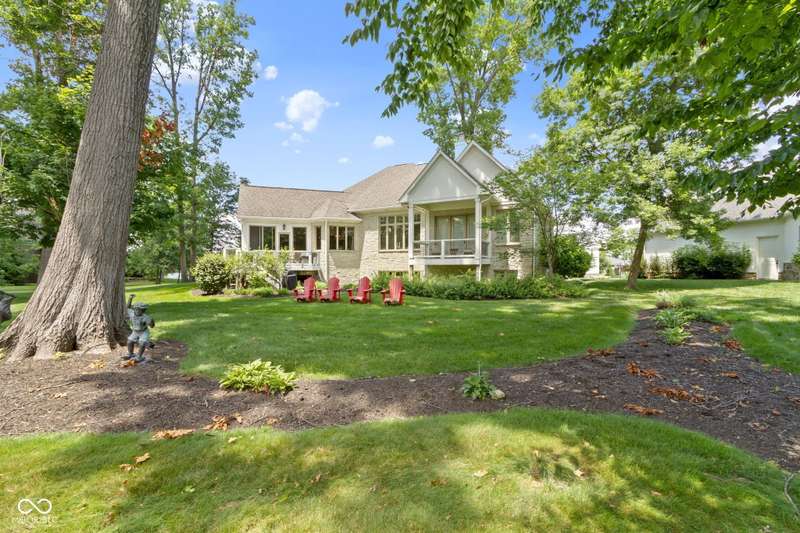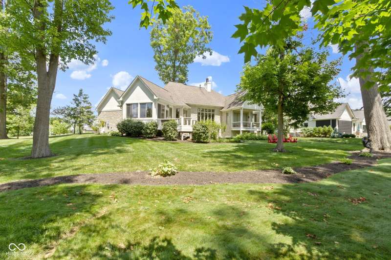 Luxurious custom built home with breath taking views of the 13th hole on the Jack Nicklaus Signature Sagamore golf course! Open floor plan that lends itself to relaxing! Great room with rare eucalyptus hardwood flooring, raised ceiling, wall of windows, built in bookcases and gas fireplace! Gourmet eat-in Chef's kitchen with light cherry cabinets, center island with breakfast bar, gas cooktop, big pantry and top of the line appliances! 18x16 master suite with tray ceiling, step in shower with dual shower heads, soaking tub and custom designed walk in closet! Private office with French doors, warm paneled wood and built ins! Formal dining room with crown molding! Stairs lead down from the garage to full finished lower level with 9' ceilings, daylight windows, 2 bedrooms, 2 full baths, wet bar, game room, theater area with surround sound and wine cellar! Stairs down from the garage lead to custom workshop area and extra storage! Sunroom features stone walls, gas fireplace, built in commercial grill with exhaust system that will allow grilling year round! Deck with shade from oak trees looking over the course! Convenient to shopping, dining, Hamilton Town Center, parks and much more! Award winning Noblesville Schools! Truly one of the best lots/views in all of Sagamore! Move right in and enjoy!