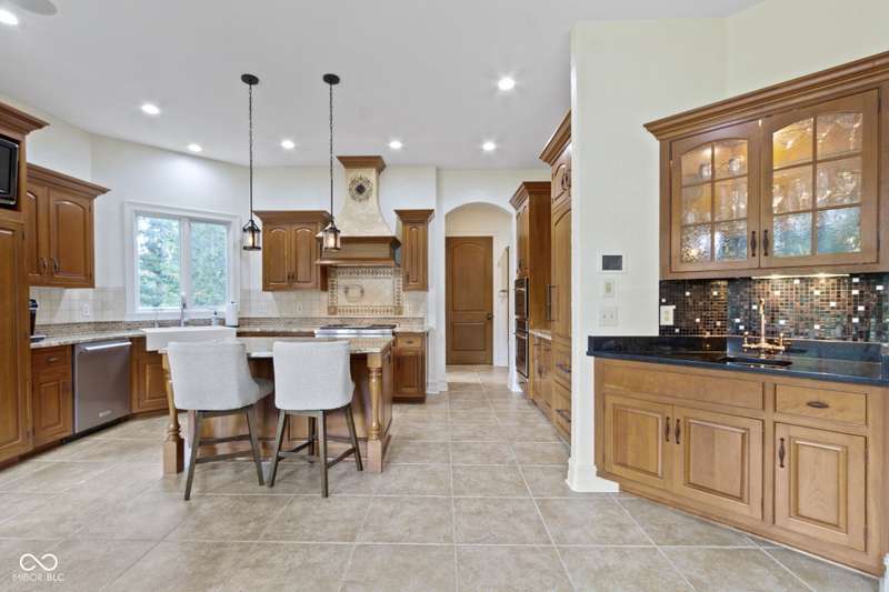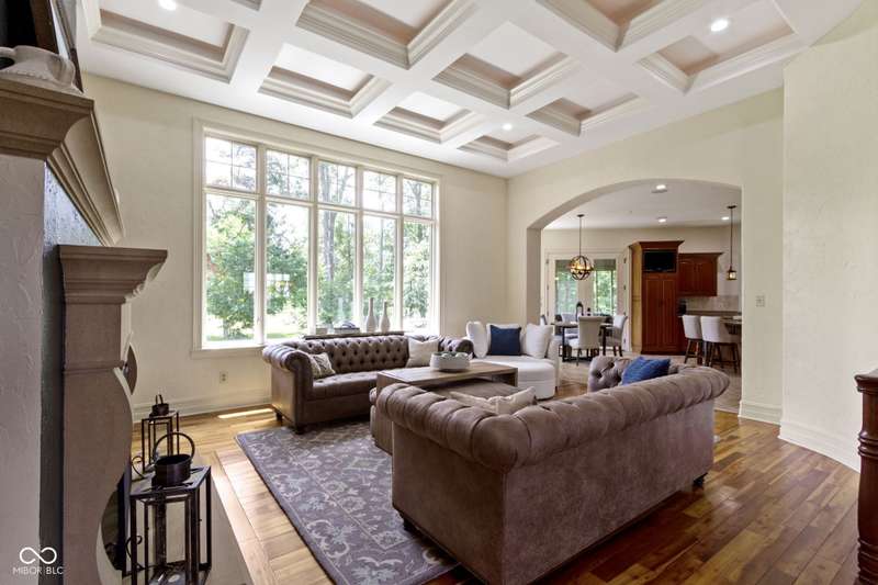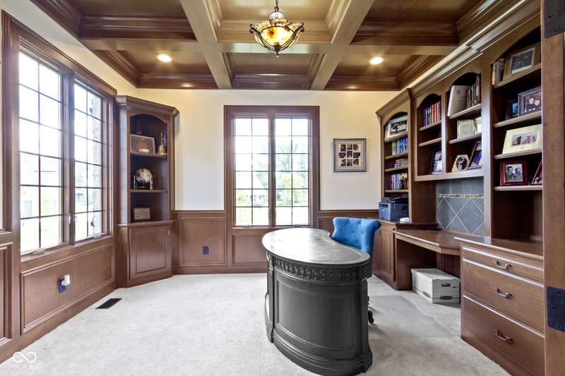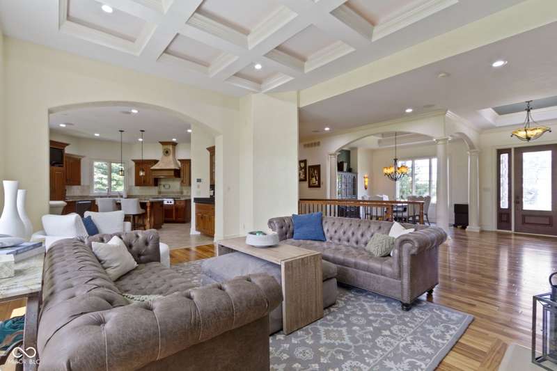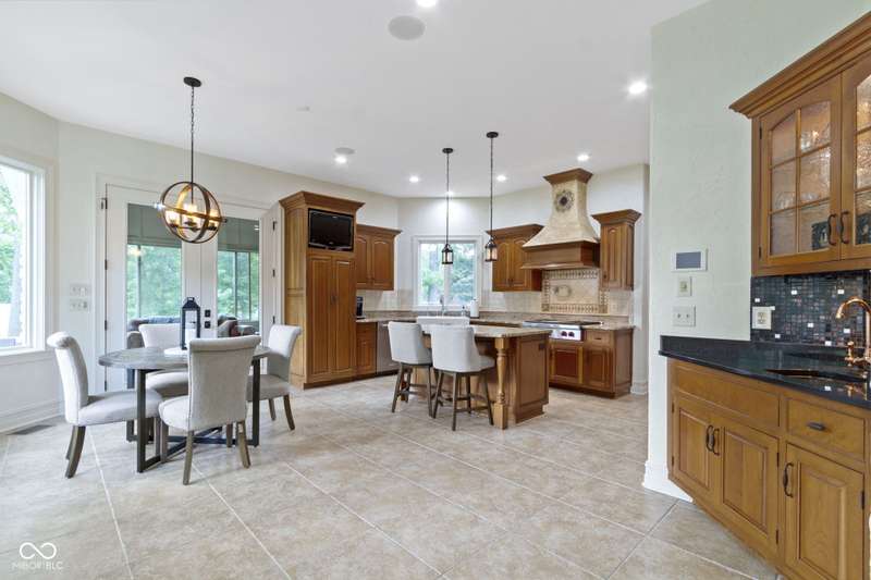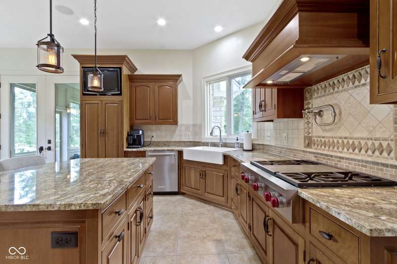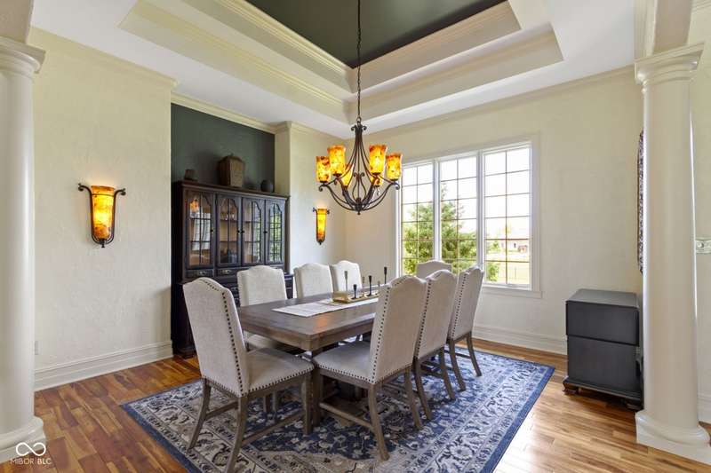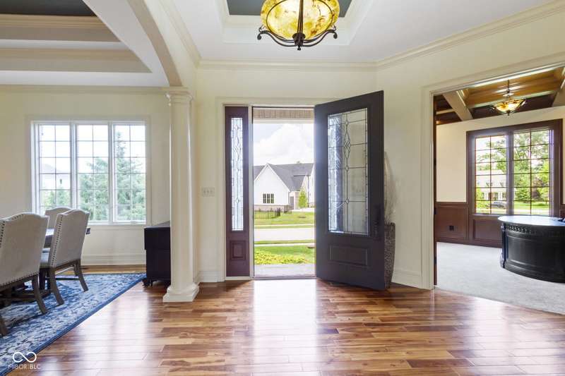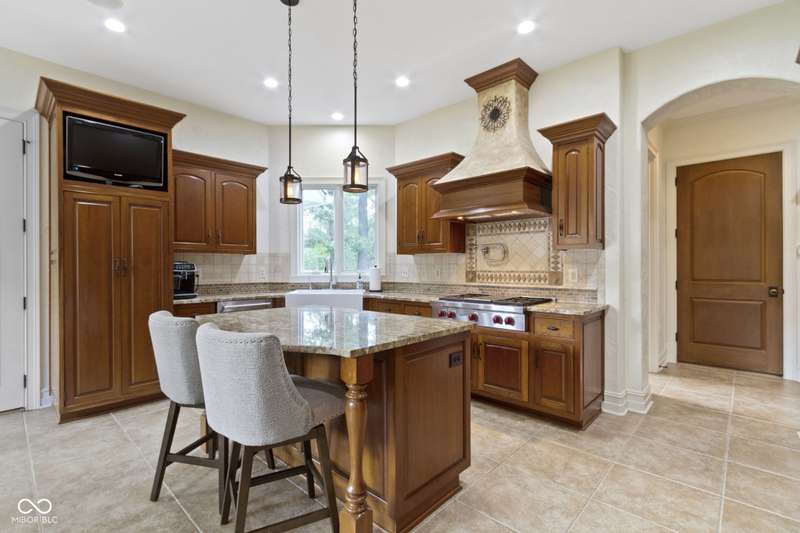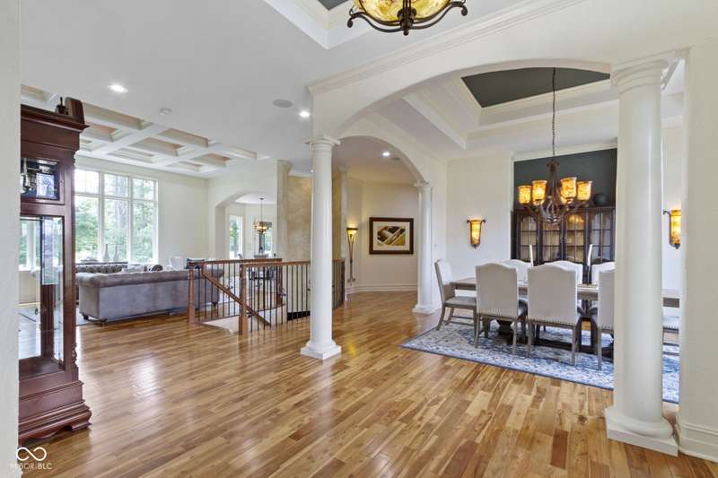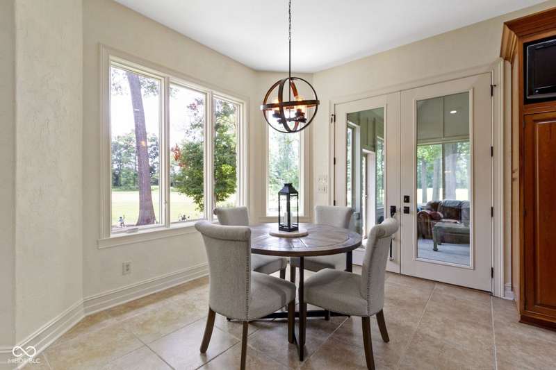 Luxurious custom built home with breath taking views of the 13th hole on the Jack Nicklaus Signature Sagamore golf course! Open floor plan that lends itself to relaxing! Great room with rare eucalyptus hardwood flooring, raised ceiling, wall of windows, built in bookcases and gas fireplace! Gourmet eat-in Chef's kitchen with light cherry cabinets, center island with breakfast bar, gas cooktop, big pantry and top of the line appliances! 18x16 master suite with tray ceiling, step in shower with dual shower heads, soaking tub and custom designed walk in closet! Private office with French doors, warm paneled wood and built ins! Formal dining room with crown molding! Stairs lead down from the garage to full finished lower level with 9' ceilings, daylight windows, 2 bedrooms, 2 full baths, wet bar, game room, theater area with surround sound and wine cellar! Stairs down from the garage lead to custom workshop area and extra storage! Sunroom features stone walls, gas fireplace, built in commercial grill with exhaust system that will allow grilling year round! Deck with shade from oak trees looking over the course! Convenient to shopping, dining, Hamilton Town Center, parks and much more! Award winning Noblesville Schools! Truly one of the best lots/views in all of Sagamore! Move right in and enjoy!