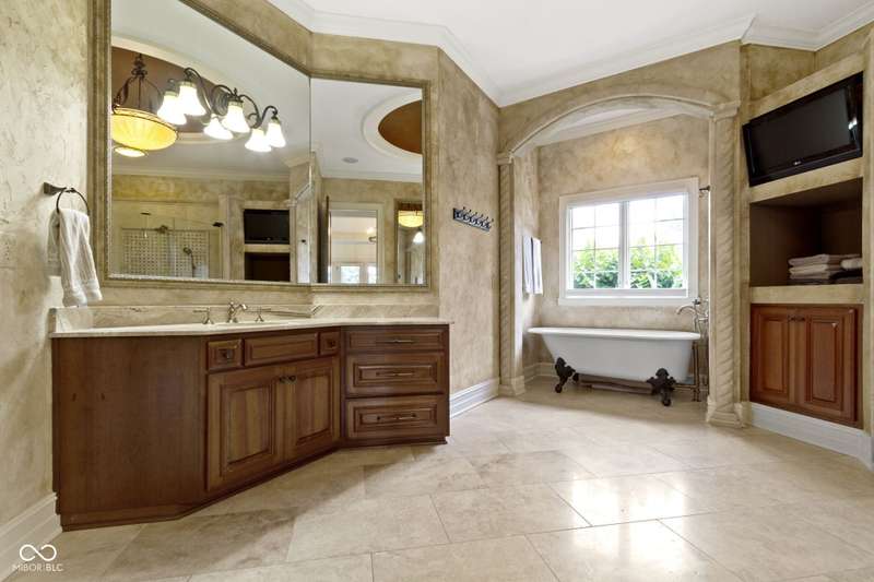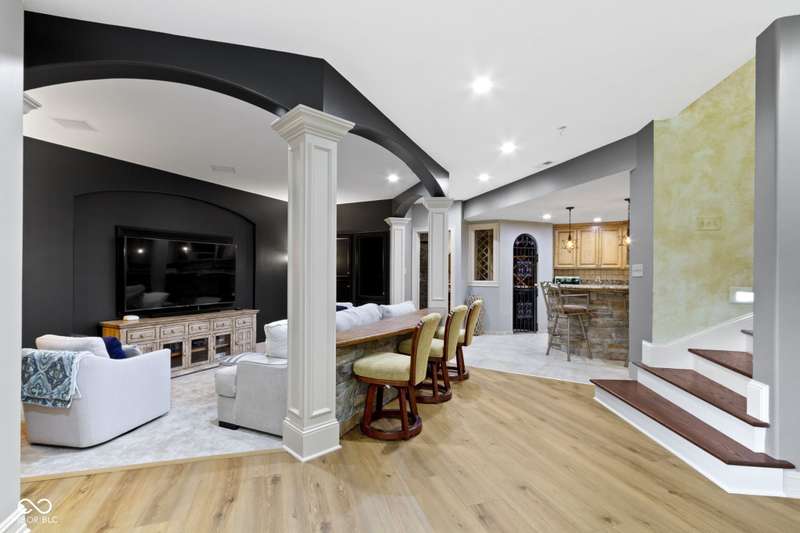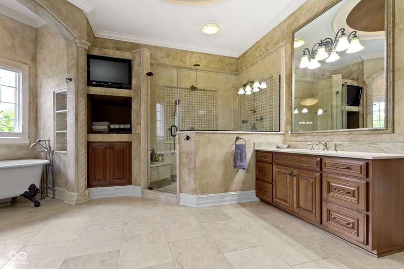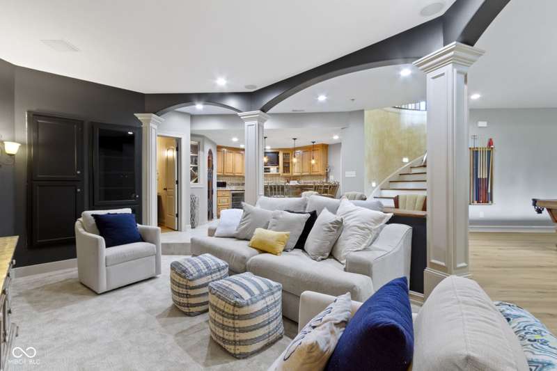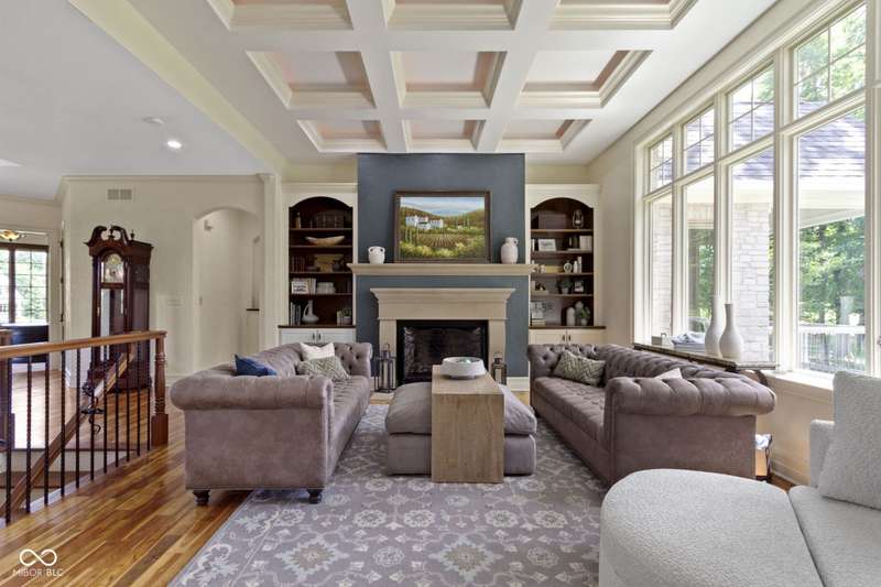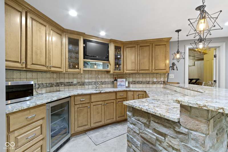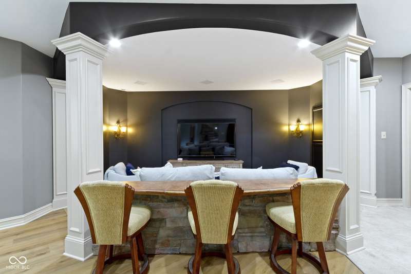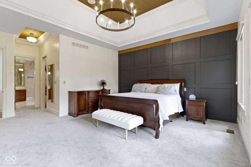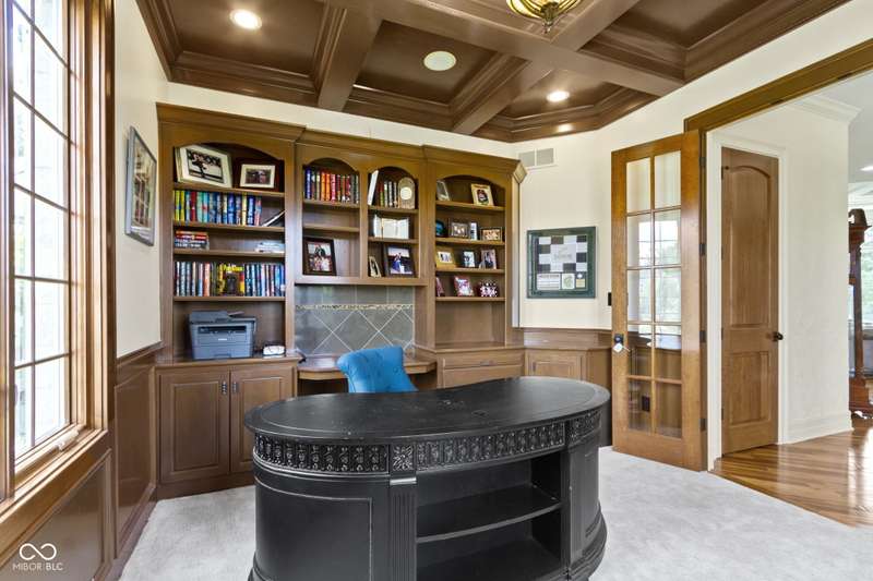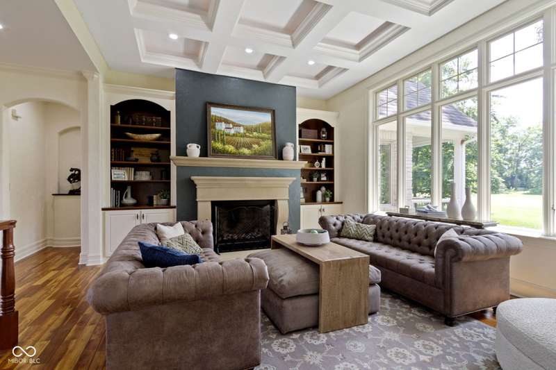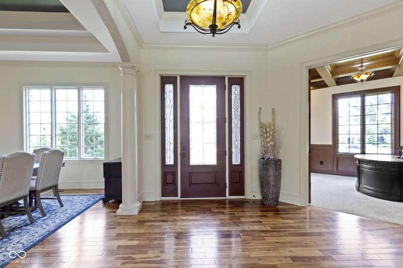 Luxurious custom built home with breath taking views of the 13th hole on the Jack Nicklaus Signature Sagamore golf course! Open floor plan that lends itself to relaxing! Great room with rare eucalyptus hardwood flooring, raised ceiling, wall of windows, built in bookcases and gas fireplace! Gourmet eat-in Chef's kitchen with light cherry cabinets, center island with breakfast bar, gas cooktop, big pantry and top of the line appliances! 18x16 master suite with tray ceiling, step in shower with dual shower heads, soaking tub and custom designed walk in closet! Private office with French doors, warm paneled wood and built ins! Formal dining room with crown molding! Stairs lead down from the garage to full finished lower level with 9' ceilings, daylight windows, 2 bedrooms, 2 full baths, wet bar, game room, theater area with surround sound and wine cellar! Stairs down from the garage lead to custom workshop area and extra storage! Sunroom features stone walls, gas fireplace, built in commercial grill with exhaust system that will allow grilling year round! Deck with shade from oak trees looking over the course! Convenient to shopping, dining, Hamilton Town Center, parks and much more! Award winning Noblesville Schools! Truly one of the best lots/views in all of Sagamore! Move right in and enjoy!
