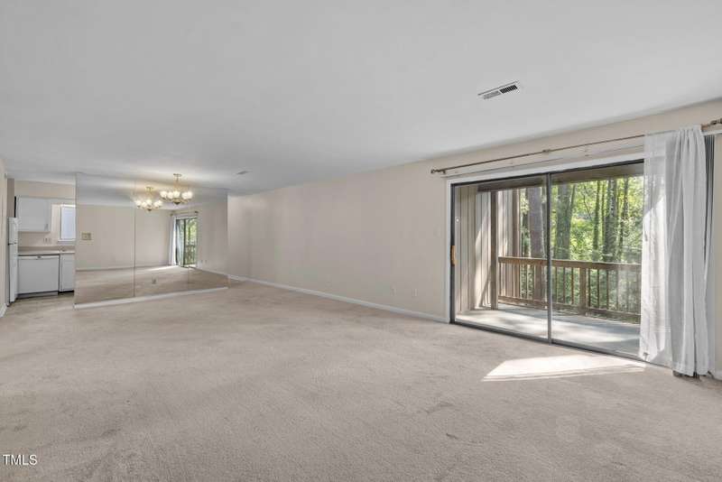 Main Level Cedar Hills Condo is located in an incredible Midtown Location near North Hills in North Raleigh. Keyless Entry accesses your Entry Foyer that opens to the Kitchen or Living Spaces, all with Smooth Ceilings. Mirrored Wall in the Dining Area. Large Family Room w/ Sliding Glass Door to a Covered Patio overlooking the Pond. Primary Bedroom features Double Closets and Private Half Bath. Guest Bedroom. Full Bathroom in the Hall w/ Washer & Dryer. Refrigerator, Microwave, Washer, Dryer all Convey! HOA covers Water, Sewer, & Trash.