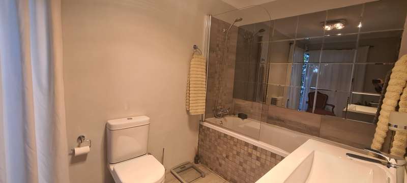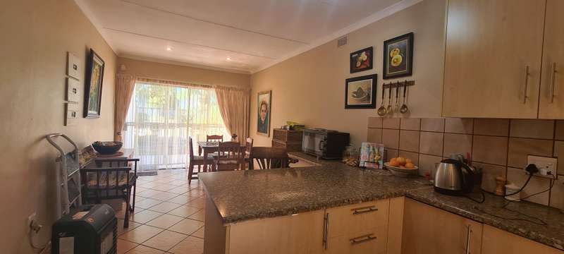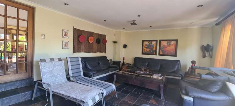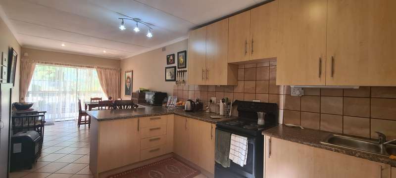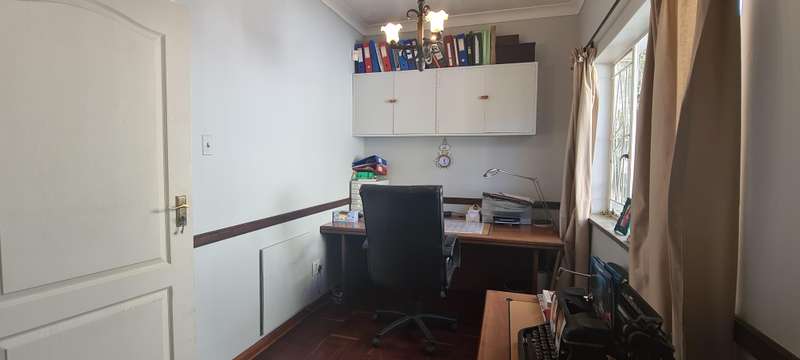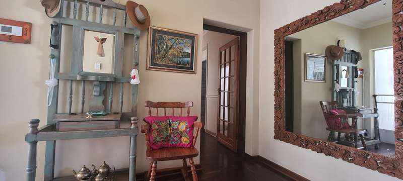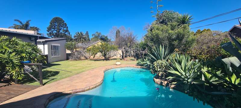 Lovely spacious and inviting 4 bedroomed family home. 2 bathrooms, study, French style kitchen, open plan lounge come dining room, Separate family room. Fitted bar. .Outside there is a lovely pool , boma, lapa with braai and guest toilet. Plus plus a sauna as an added extra.. Then to top this all, there is a lovey 2 bedroomed flat for family of extra rental income. Tranquil enclosed garden .Jo-Jo tank with pump. Call me to view this lovely family home.