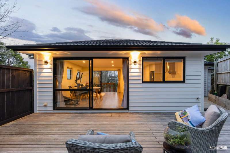Discover this exceptional family home and near-new Minor Dwelling perfectly positioned on an elevated full site in a quiet, sought-after cul-de-sac in the heart of Mairangi Bay. Designed for family living and entertaining, this property combines comfort, flexibility, and lifestyle in one complete package. Main Home: Step inside to find four generous bedrooms, two bathrooms, a modern granite kitchen with stainless steel appliances, and a welcoming lounge featuring a gas fireplace. The open-plan living and dining spaces flow seamlessly to a sun-soaked deck and BBQ patio, perfect for gatherings. The ground floor offers even more versatility, with a multi-purpose room and a separate living area — ideal for extended family, teenagers, or a home office. Outdoors, the fully fenced backyard is a haven for children, complete with a treehouse, goldfish pond, and plenty of space to play. Legal Minor Dwelling: This near-new, free-standing minor dwelling features two double bedrooms, both with direct access to the north-facing deck. A well-appointed full bathroom and a convenient laundry cabinet add to the home’s practicality. The open-plan living, dining, and kitchen areas extend seamlessly to decks on both the northern and eastern sides, creating a light-filled and inviting atmosphere. Double-glazed windows and doors ensure year-round comfort. The minor dwelling also comes with a separate power meter. Mairangi Bay beach, vibrant village shops, cafés, and restaurants are all close at hand. With Albany just 10 minutes away and the CBD around a 20-minute drive, this home provides the perfect balance of coastal lifestyle and city convenience. Families will love the zoning for top schools, including Mairangi Bay Primary, Murrays Bay Intermediate, and Rangitoto College — all within easy reach. Built to capture all-day sunshine and offering space, flexibility, and location, this is a property you’ll instantly fall in love with. Don’t miss this opportunity — contact us today to arrange your private viewing. Auction: 8-12 The Promenade, Takapuna on Wednesday 22 October 2025 at 9:30AM (unless sold prior)