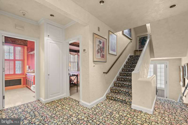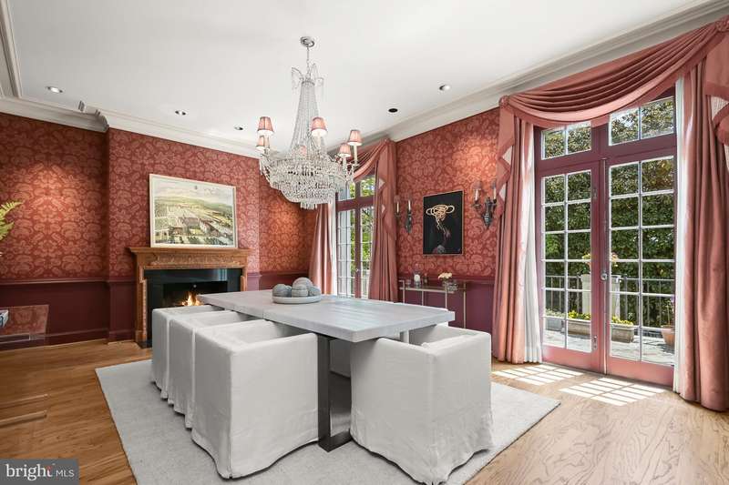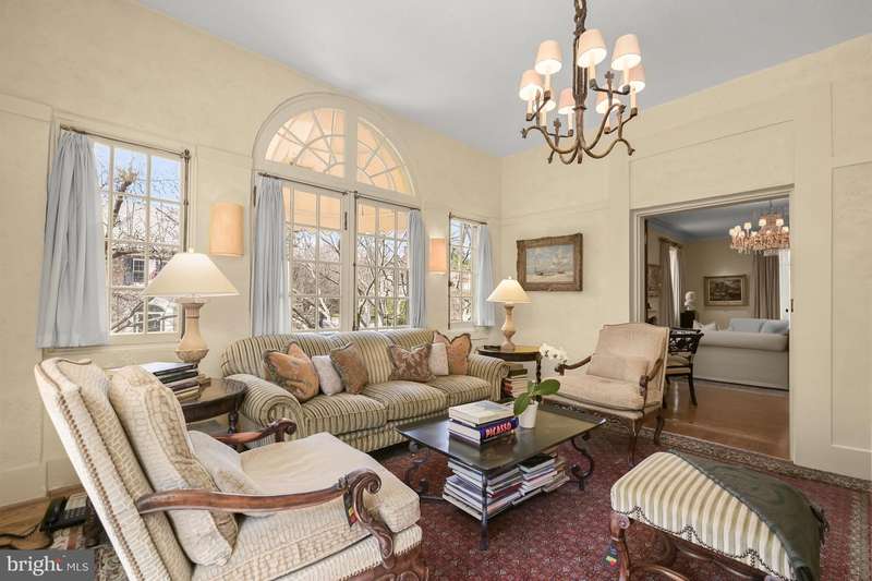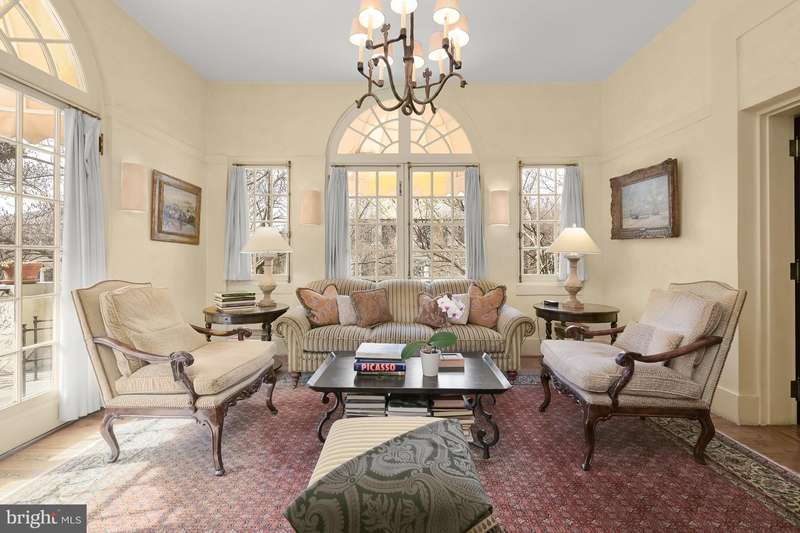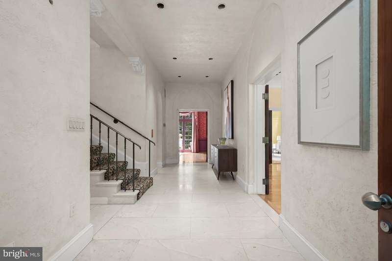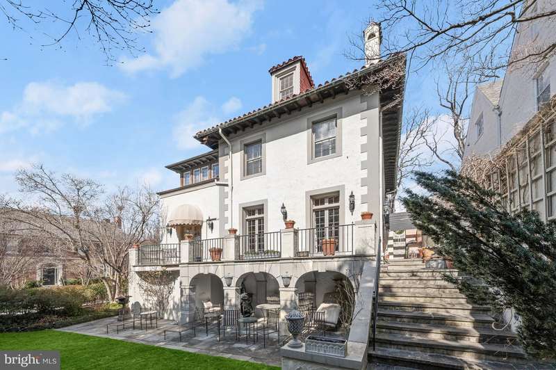 Nestled in the prestigious Kalorama neighborhood, 2330 Tracy Pl NW is a breathtaking Mediterranean Revival residence that epitomizes elegance, grandeur, and architectural refinement. Built in 1923, this stately four-level residence showcases the craftsmanship of a bygone era while offering modern comforts for refined living. The homes hand-troweled stucco and stone faade, quoined corners, arched entryways, and terracotta roof tiles create a striking first impression. Its handsome wood-paneled doors lead into the vestibule, where intricate ironwork and arched glass French doors open to a magnificent Entrance Hall wrapped in hand-troweled stucco walls and gleaming marble floorsan exquisite introduction to the homes unparalleled classic elegance.Designed for both grand entertaining and intimate gatherings, the main level offers beautifully proportioned formal rooms. The elegant living room boasts soaring ceilings, an exquisite stone fireplace, and decorative millwork, all illuminated by large windows and a stately crystal chandelier. A sunlit sitting area, framed by arched Palladian windows and French doors, opens to a seating area on the balcony overlooking the rear yard, offering a view of the verdant lawn, mature trees and manicured plantings.The formal dining room exudes timeless sophistication. Floor-to-ceiling French doors invite the outdoors into every dining experience by giving guests direct access to an extensive balcony overlooking the rear yard and courtyard beneath its arched loggias below. A second ornate stone fireplace anchors the room, creating warmth and a perfect setting for unforgettable evenings. The gourmet kitchen is beautifully appointed with professional-grade Thermador, Sub-Zero, and Viking appliances, glass-front cabinetry, and a wine refrigerator. A butlers pantry off of the formal dining room provides additional preparation space, ensuring effortless entertaining. A powder room and a coat closet are discreetly positioned nearby, preserving the main levels refined aesthetic without compromising convenience.The grand staircase leads to the upper living quarters, where the owners suite spans nearly the entire second level. This suite includes an expansive dressing room, a large walk-in closet, and a spa-like en-suite bathroom complete with a jetted soaking tub, dual vanities, bidet and standing shower with seating. The bedroom boasts a magnificent fireplace and opens to a spacious sitting room. An additional bedroom and full bathroom complete this second level. The next level up offers an additional well-proportioned bedroom, a den or sitting room,two full bathrooms, and built-in storage, providing privacy and comfort for family and guests alike. The lower level features an office, a full bath, a spacious laundry room, ample storage, and a two-car garage. Surrounded by embassies, ambassadorial residences, and some of the citys most architecturally significant homes, 2330 Tracy Pl NW offers a distinguished setting just moments from Dupont Circle, Woodley Park, Georgetown, and Rock Creek Park. This exceptional home is a testament to Mediterranean Revival design, where historic elegance meets modern refinement.