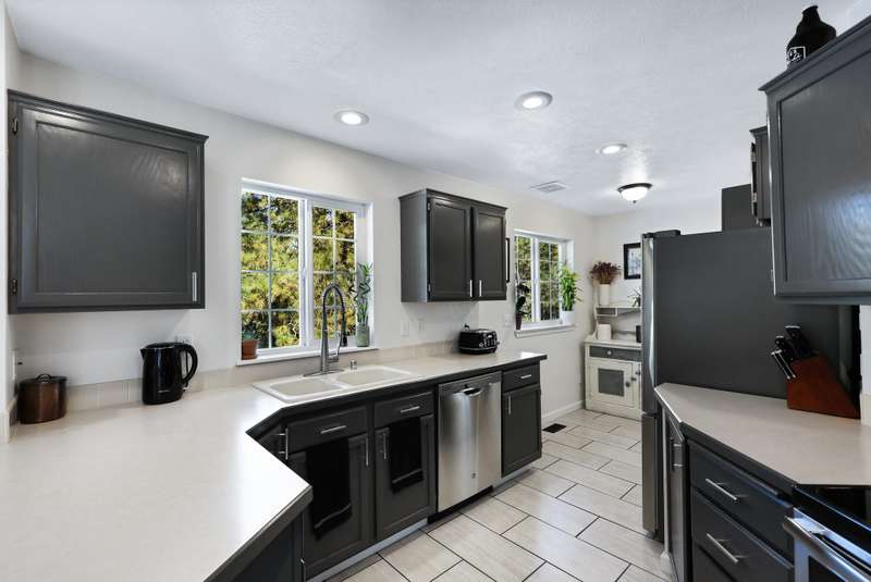 BACK ON MARKET Welcome to this stunning 5-bedroom, 3-bathroom home nestled in one of Spokane’s gated communities. This beautifully updated residence offers the perfect blend of privacy, space, & modern comfort. Inside, you'll find a spacious & flexible floor plan with high ceilings, abundant natural light, & stylish finishes throughout. The kitchen boasts updated appliances, tile floors, and painted cabinetry—perfect for entertaining or everyday living. The open-concept living & dining areas flow seamlessly, creating a warm & inviting atmosphere. The primary suite includes a walk-in closet & a en-suite bath, while the additional bedrooms offer plenty of room for family, guests, or a home office setup. Downstairs, enjoy the fully finished basement where 3 bedrooms are located (5th bed is non-egress) —ideal for movie nights, a gym, or multigenerational living. Outside, enjoy the fenced backyard overlooking the HOA owned green space. HOA pays for water, sewer, garbage, all lawn/sprinkler maintenance.
