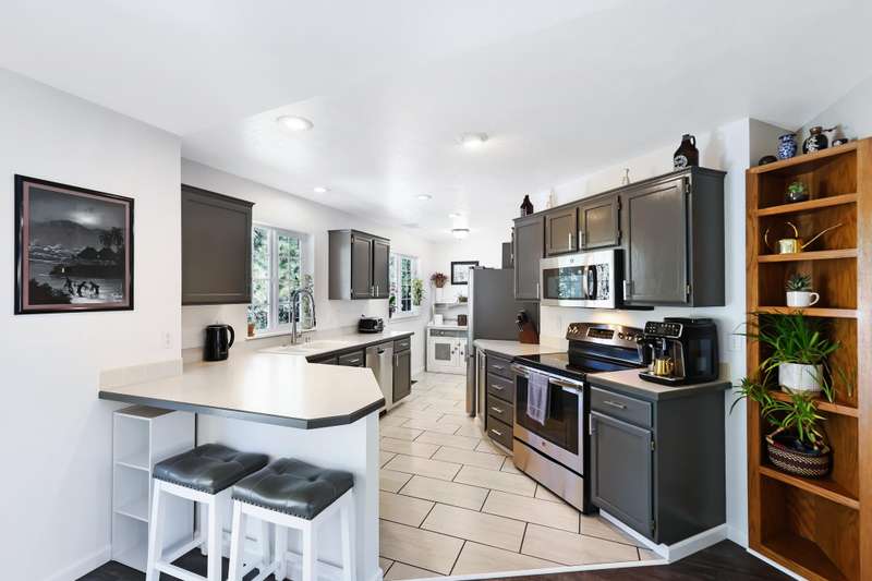 Welcome to this stunning 5-bedroom, 3-bathroom home nestled in one of Spokane’s gated communities. This beautifully updated residence offers the perfect blend of privacy, space, & modern comfort. Inside, you'll find a spacious & flexible floor plan with high ceilings, abundant natural light, & stylish finishes throughout. The kitchen boasts updated appliances, tile floors, and painted cabinetry—perfect for entertaining or everyday living. The open-concept living & dining areas flow seamlessly, creating a warm & inviting atmosphere. The primary suite includes a walk-in closet & a en-suite bath, while the additional bedrooms offer plenty of room for family, guests, or a home office setup. Downstairs, enjoy the fully finished basement where 3 bedrooms are located (5th bed is non-egress) —ideal for movie nights, a gym, or multigenerational living. Outside, enjoy the fenced backyard overlooking the HOA owned green space. HOA pays for water, sewer, garbage, all lawn/sprinkler maintenance.