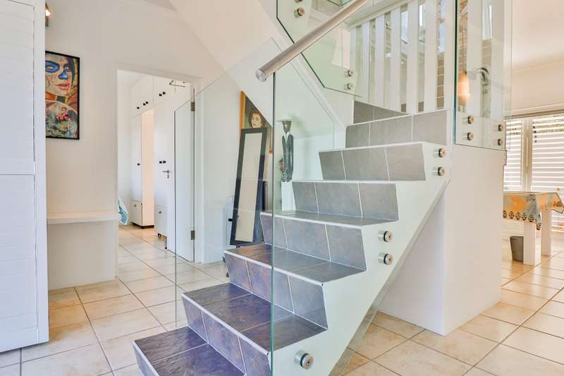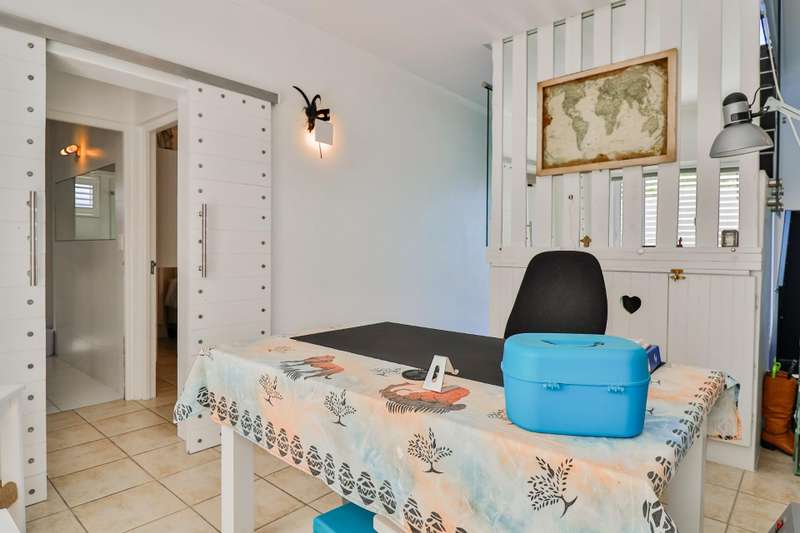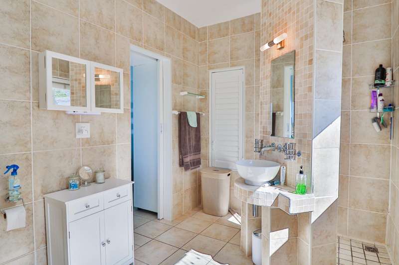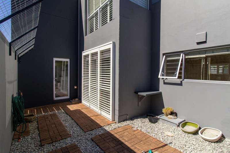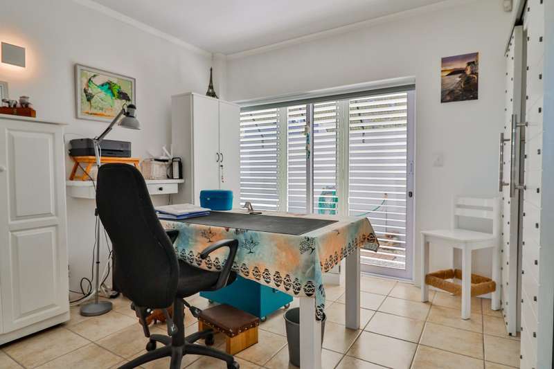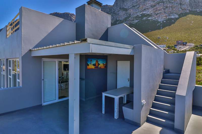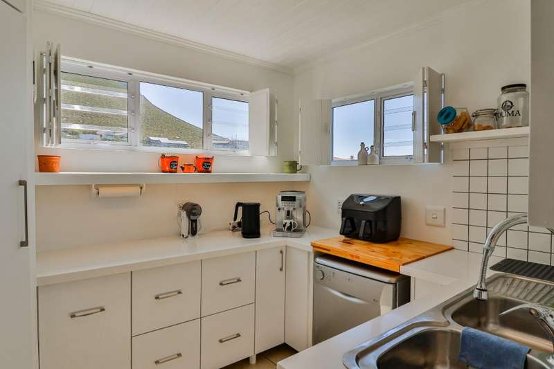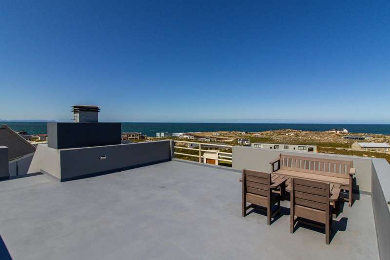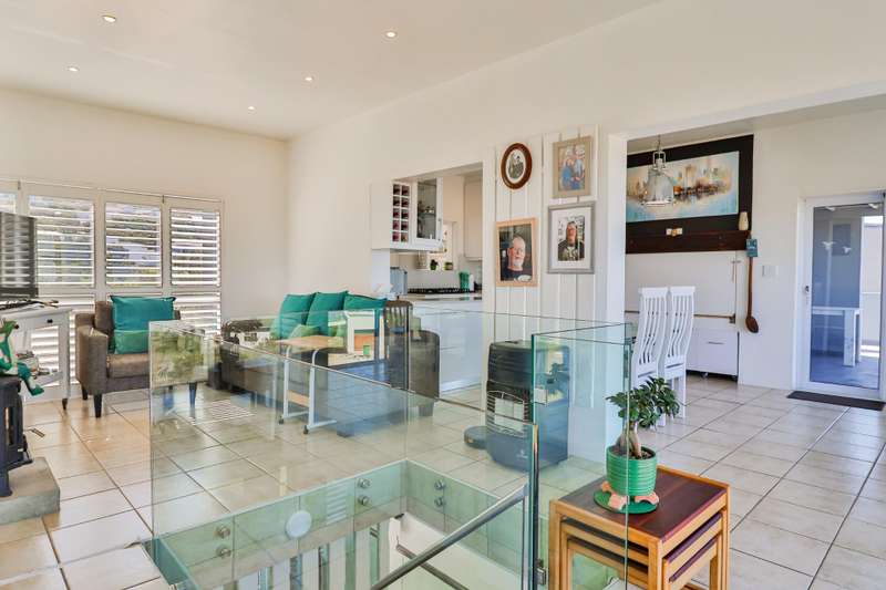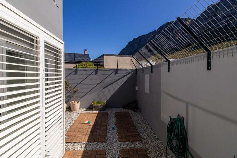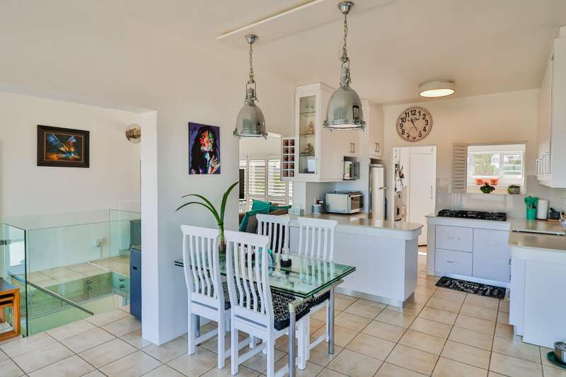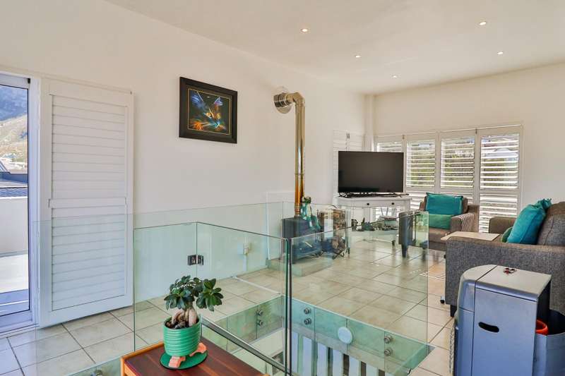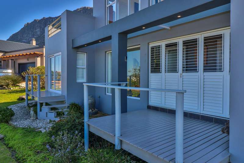 Heritage architect Raymond Smith has worked wonders to allow every nook and cranny to be space savers without even realising it. With all the living upstairs offering magnificent and expansive views from all angles/windows together with the sun streaming in all day, this property is bathed in sunlight which enhances the entire experience. Off the top living area which includes a fabulously positioned braai with aesthetically pleasing doors; a newly installed fireplace; two outside patios which accommodate our known wind system and then there is a roof top stoep offering 360* views - mountain, sea, Danger Point in Gansbaai and our local lighthouse at Sea Farm. All three bedrooms(with 2/3 having doors leading outside) are downstairs with a TV room cum study/hobbies area discreetly tucked behind the entrance wall. The entrance is enhanced by the glass banisters of the stairs giving a light and airy feeling. The automated garage has a discreet entrance off to the side which can also be accessed from the garden. Delightful use of space in the bathrooms. Aluminium window frames and doors. American shutters all round. The kitchen/scullery have beautifully finished cupboards and quartz/corian counter tops with a fabulous gas hob. The finishes complement and enhance the decor beautifully with the well maintained and carefully thought out garden/stoned areas/courtyard rounding off this package. There is 'catterio' off the study cum TV room which allows the kitties to play without being able to jump up out of the yard. There is a seperate DB board/switch for the generator. There is a 2x3m2 store room completely seperate to the main house with a paved walkway which gives comfortable access for wheelbarrows/bicycles etc to be stored.