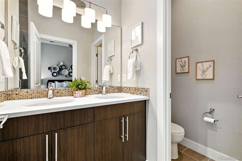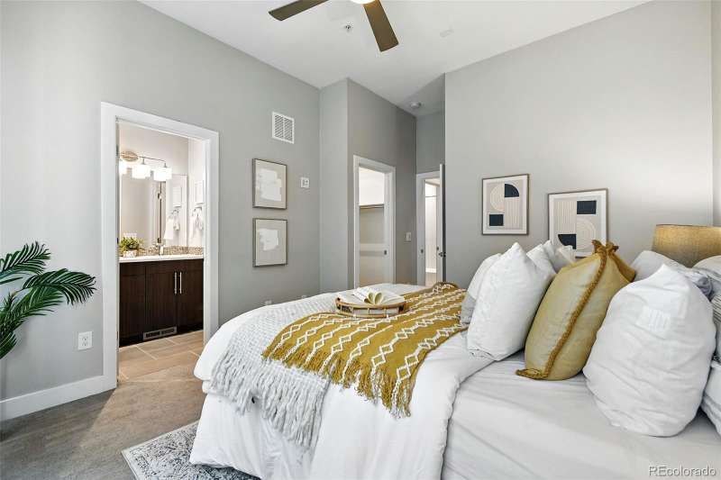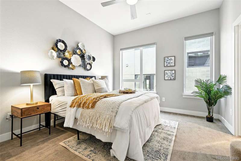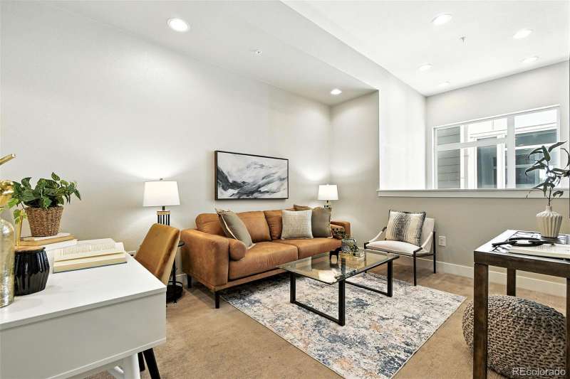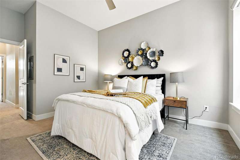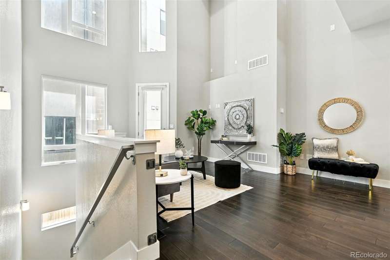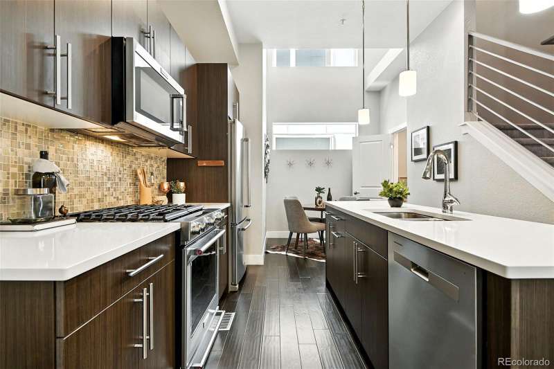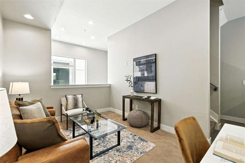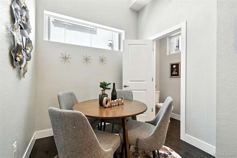 High ceilings soaring twenty feet and expansive windows create a sense of openness throughout this modern townhome located just steps from both Jefferson Park and LoHi. Built in 2015, the home offers a functional and well-designed layout with 2 bedrooms, 4 bathrooms, and a spacious loft that provides additional flexibility for an office, workout space, guest area or third bedroom. The main level features an open kitchen with quartz countertops, a large center island, and stainless steel appliances, all designed for everyday ease and entertaining. The adjacent living and dining areas are filled with natural light, and the layout supports both comfortable living and efficient flow. Upstairs, the primary suite includes a generous closet and en-suite bathroom, while the second bedroom and full bathroom are located down the hall for added privacy. The next level leads to a large rooftop deck with expansive city views, offering a low-maintenance outdoor space to enjoy. The rooftop is designed to support a hot tub. There is also no HOA-only a party wall agreement with an average monthly cost of just $97 over the past 12 months, providing excellent value for low-maintenance living. Additional highlights include a two-car garage, deep-cleaned carpets, and a freshly painted exterior entrance. This townhome offers a move-in-ready option in one of Denver's most vibrant and walkable neighborhoods, with quick access to dining, shopping, and downtown.