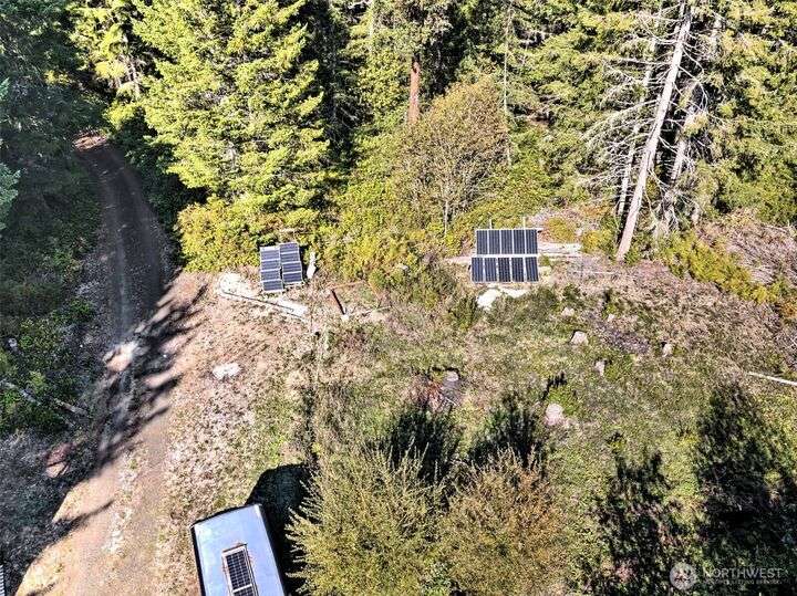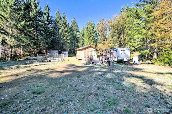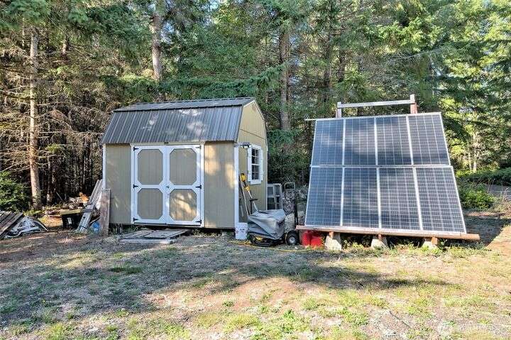 Let's get OFF THE GRID! Or not... Here is a wonderful 5 acre parcel located on the South end of Harstine Island in the middle of Puget Sound with a fully self contained & affordable living situation. It includes a really nice 23' travel trailer with deck & awning, an additional building for utilities & hanging out in front of the wood stove, another 12' x 16' artist studio & several more sheds & storage buildings. Conventional power is at the property but the owners have chosen to use the sun and solar panels to generate to bulk of the electricity they use & store it in a battery bank. They have a very deep drilled well, a 3 bedroom septic system for future expansion, tons of privacy & the property backs up on State forest lands. Nice spot!