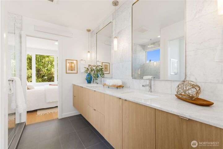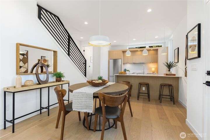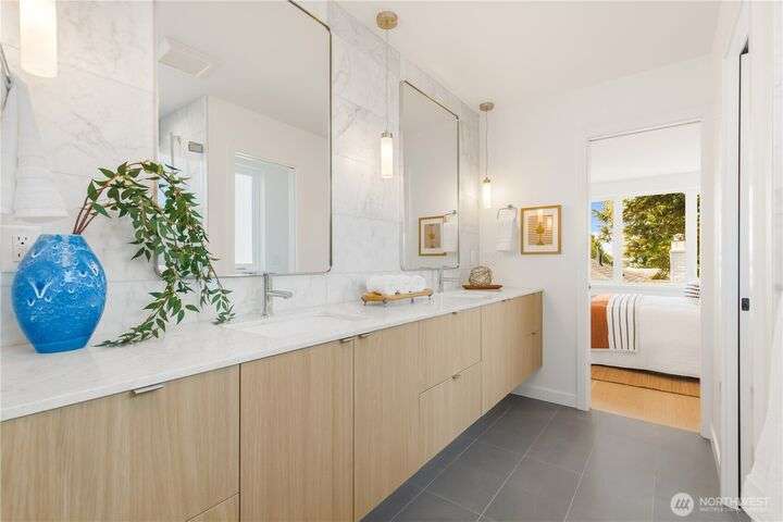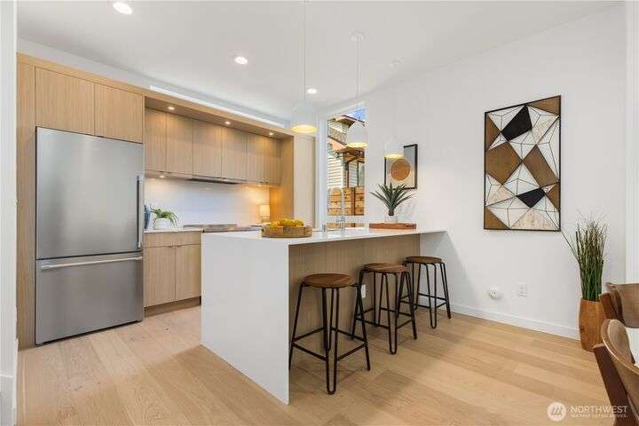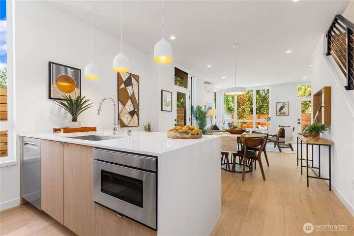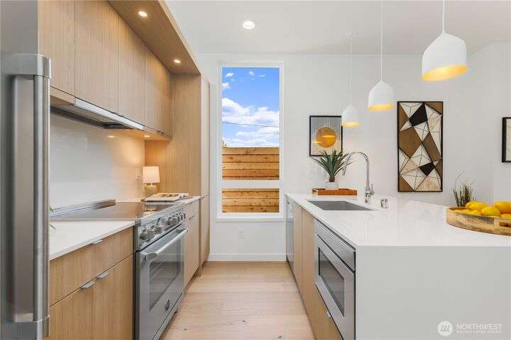 Renowned Seattle builder Blok2 introduces a modern & sophisticated home in West Seattle’s Gatewood neighborhood. The open, light-filled layout highlights spacious living areas with quality finishes & thoughtful design throughout. A gourmet kitchen showcases refined cabinetry & a high-end stainless appliance package, perfect for entertaining or everyday living. Upstairs you’ll find two comfortable bedrooms with vaulted ceilings & a spa-inspired bath featuring a marble walk-in shower & oversized double vanity. A private patio extends the living space outdoors, while the location offers easy access to shops, dining, & parks. This home blends modern design, luxury and lifestyle in perfect balance. 4.875% buy-down with preferred lender!