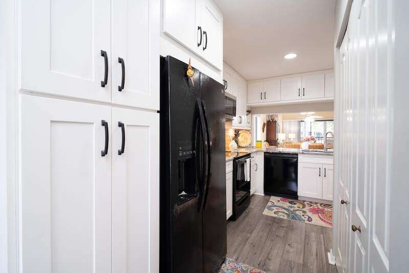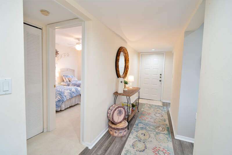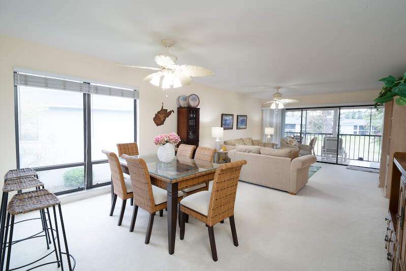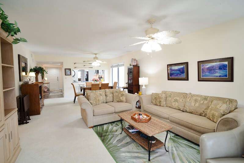 Motivated Seller - Seller Says Bring All Offers! This lovely and spacious 2-bedroom, 2-bath END UNIT with a cozy dinette area off the kitchen is sure to impress the moment you arrive! The beautifully updated kitchen features granite countertops, a tiled backsplash, and custom cabinets with pullouts and soft-close drawers, combining both style and functionality. The open floor plan creates a bright, welcoming atmosphere perfect for entertaining or relaxing. The guest bathroom has been refreshed with a new vanity and toilet, and a pocket door adds privacy for your guests. Enjoy plank vinyl flooring in the entrance, dinette area, and kitchen for easy maintenance and modern appeal. This home also features a Trane 2.5-ton A/C (approx. 1 year old) and both electric and manual hurricane shutters on the lanai and dinette window for added peace of mind. Relax or entertain on the large lanai, which offers extra storage and plenty of room to unwind. Take advantage of easy access to the community pool for swimming and socializing. Conveniently located near Naples' beautiful white sandy beaches, downtown 5th Avenue, and Mercato, you'll enjoy all the best dining, shopping, and entertainment Naples has to offer. The nearby Berkshire Commons Shopping Plaza provides everyday conveniences including Publix, Walgreens, restaurants, and ice cream shops-all just minutes away. Seller is motivated - bring all offers! Don't miss this opportunity to own a stunning home in a fantastic location. Schedule your showing today and start making new memories! Rentals available 3 x year with a min of 30 days or annual leases.