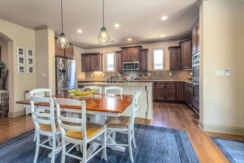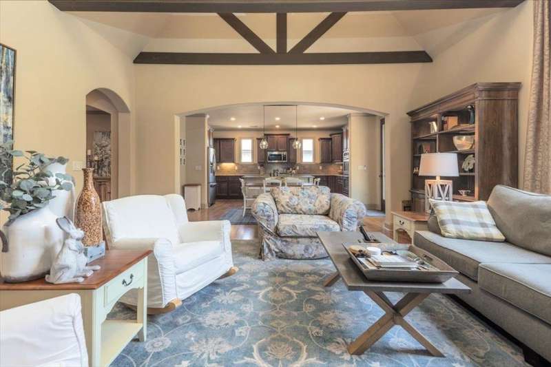 This Beautiful Home with a fabulous flow does not disappoint. Upon entry you can't help notice the warm embrace of the hardwood floors flowing throughout the downstairs. The main living area is anchored by a Fieldstone fireplace w/gas logs. There is an abundance of natural light provided by oversized windows in the main living area. The kitchen and breakfast area are open and spacious. The home offers a formal and casual dining experience. There are 4 bedrooms, The Primary Suite & 1 other bedroom down, 2 full baths down and Jack-n-Jill bath up. An impressive oversized hobby room with wood flooring offers a menu of options. The Bonus Room is large enough for a media room & work out space. The backyard provides a serene setting. Relax on the covered back porch and enjoy the peacefulness of the conservation area the property backs up to. The oversized patio offers a stone fire pit and grilling area. Neighborhood Pool and Walking Trails.