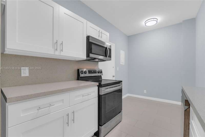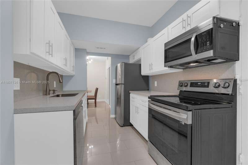 All Ages Welcome! Fabulous and fully renovated 1/1.5 with beautiful garden views. Enclosed balcony makes for a great additional room. Hurricane proof windows and doors. Beautifully tiled throughout.9 Ft. Ceilings. Updated white shaker kitchen cabinets with quartz countertops and stainless steel appliances. New hot water heater. 996 SQ FT. Building enjoys 24/7 security, heated pool and extra storage. Steps to miles of walking paths and clubhouse with barbeques. Access to pickleball and tennis courts. Close to shopping, restaurants, beaches, Ft. Lauderdale Airport, Las Olas, Hardrock Hotel and Casino, Gulfstream Park & Racing, all major highways and the Famous Hollywood Boardwalk.