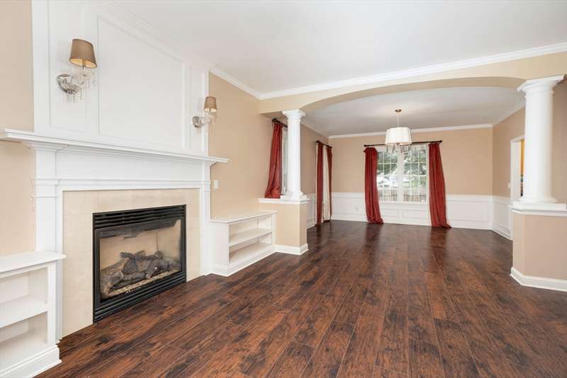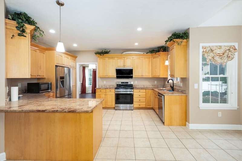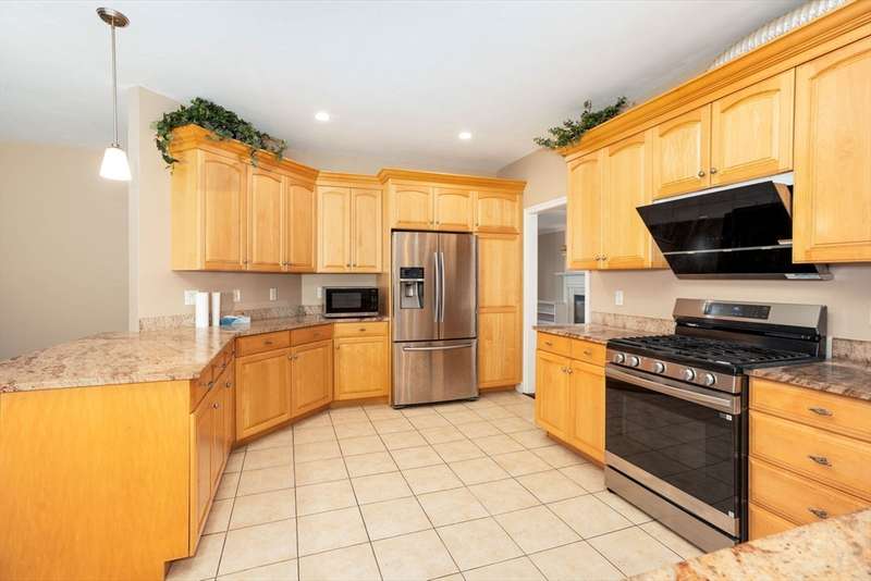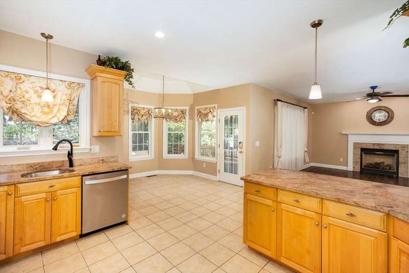 This home showcases custom craftsmanship throughout, a gourmet kitchen featuring maple cabinetry, stainless steel appliances, granite countertops, and a eat-in area with direct access to the deck—perfect for morning coffee or evening gatherings.The kitchen opens into a spacious family room adorned with wide-plank hardwood flooring, a gas fireplace, and a large picture window offering natural light.The formal dining and living room combination is ideal for entertaining, crown molding, built-in shelving, wainscoting, and a second gas fireplace for added warmth and ambiance. Upstairs, the primary suite has three generous closets, a luxurious private bath, and sitting area. Three additional bedrooms with double closets, providing ample storage. The finished lower level is perfect for a playroom, media room, or gym. Outside,enjoy an oversized fenced-in yard. Quick access to Route 93, shopping, in a top-rated school district. Seller will consider reasonable offers.