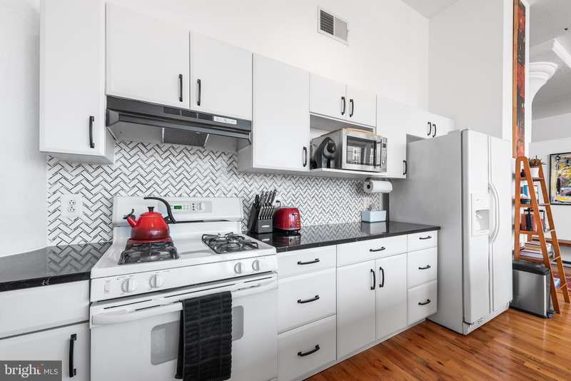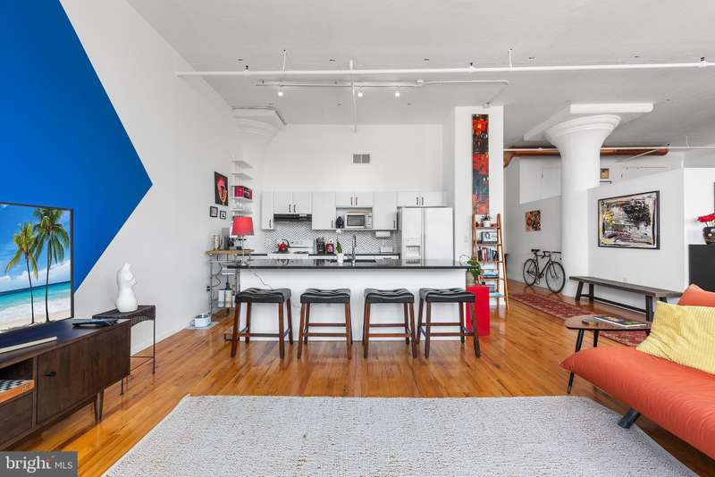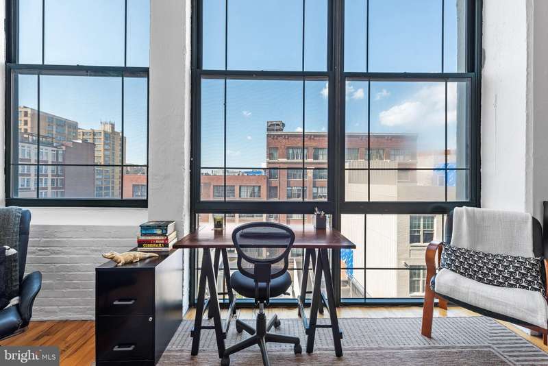 Welcome to Unit #604, a rare gem nestled in the iconic Old Shoe Factory Condominium-a former warehouse turned unique loft building in Callowhill, one of Philadelphia's most dynamic and creative corridors. Rich in character and industrial charm, this building tells a story-and Unit #604 invites you to be part of it. Inside, you'll find a spacious one-bedroom loft flooded with natural light from a dramatic wall of nearly floor-to-ceiling north-facing factory windows. Soaring ceilings, original hardwood floors, and striking black steel window frames set the stage for a true downtown loft experience that feels more Tribeca than typical Philly condo. The open-concept living space is both expansive and intimate. While the minimalist kitchen offers clean lines and a large island making cooking and entertaining effortless-whether you're hosting a dinner party or sketching over coffee. The elevated bedroom adds architectural dimension and cleverly conceals a massive bonus storage area, creatively accessed through a discreet crawl space door-offering an uncommon amount of hidden storage for city living. The deep soaking tub with whirlpool jets is perfect for winding down after a long day, and the in-unit washer and dryer, generous closet space, and newer HVAC system ensure comfort and convenience throughout the seasons. This pet-friendly building allows one dog or one cat, perfect for animal lovers seeking city living without compromise. Parking can be rented off-site, via one of the many nearby lots and ample street parking options are available within the neighborhood. Building amenities include a secure mailroom, elevator, and a chair lift for enhanced accessibility. Just outside your door, you'll find an energetic community surrounded by the Rail Park, art spaces, music venues, and beloved local dining spots like Wood St. Pizza, El Purepecha, and Cafe Lift. Unit #604 is more than a place to live-it's a creative retreat with one-of-a-kind charm, hidden functionality, and a location that keeps you connected to the pulse of the city.