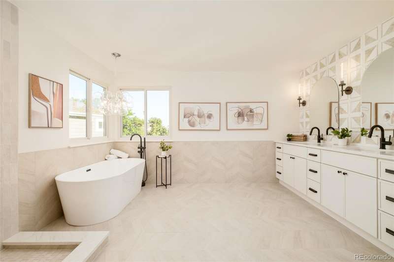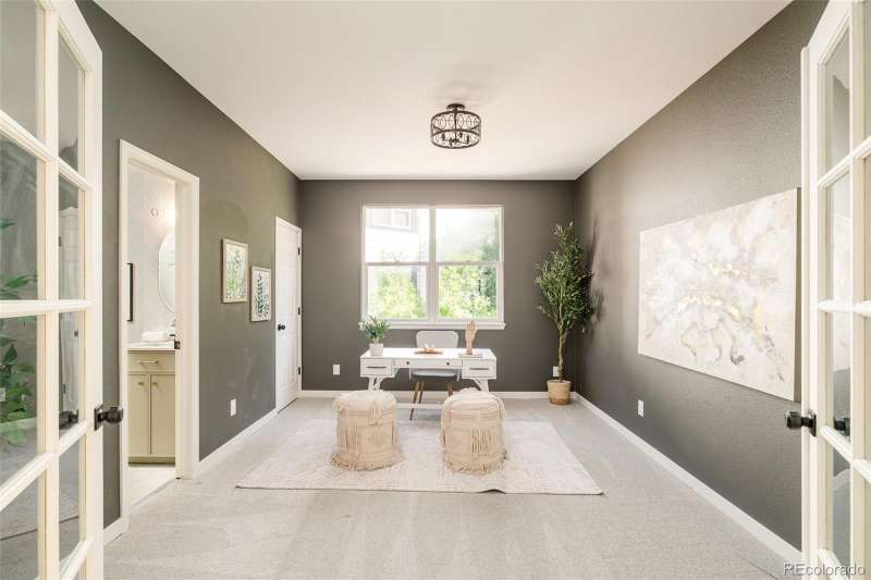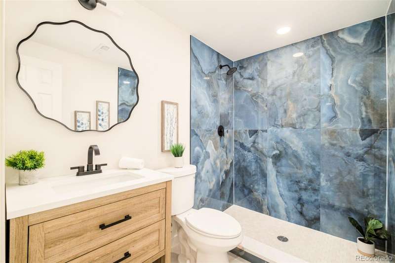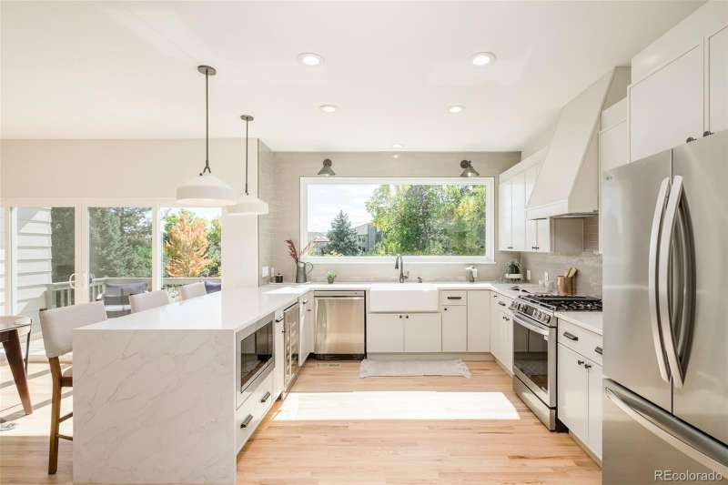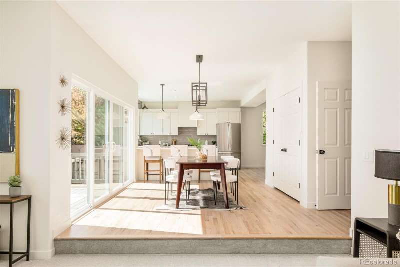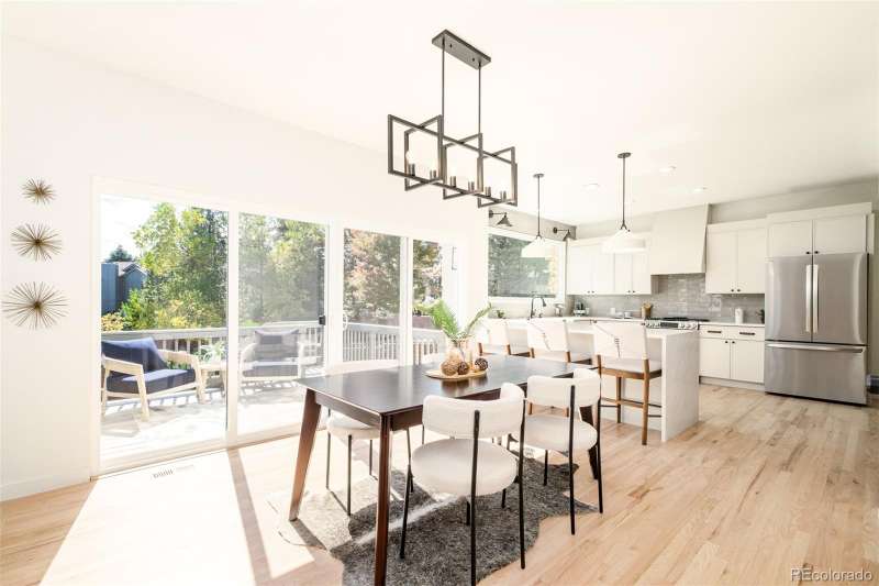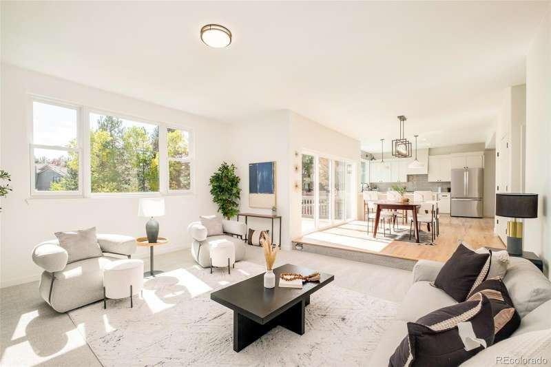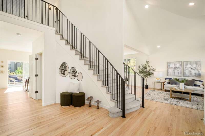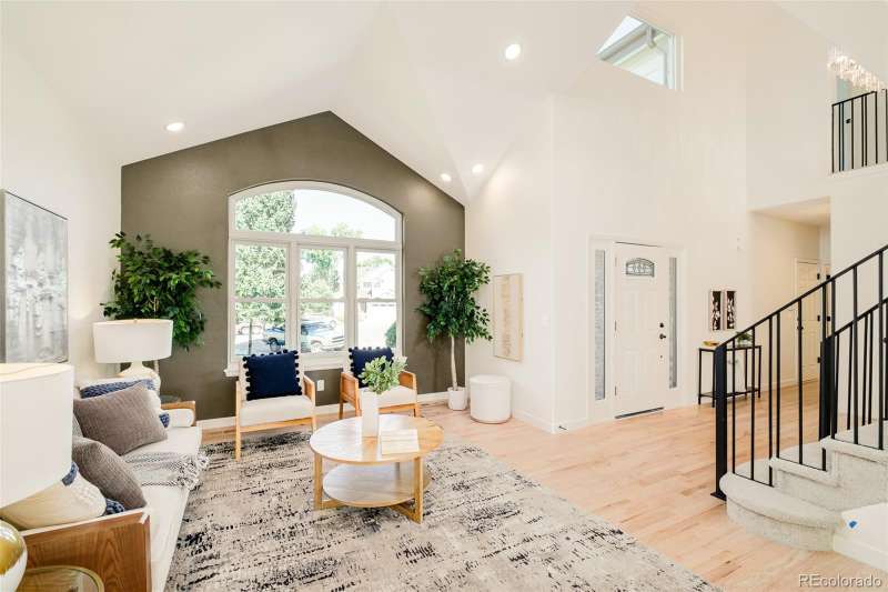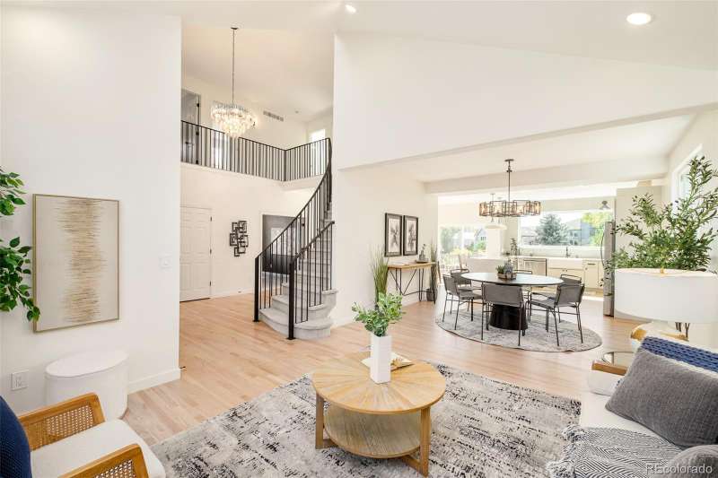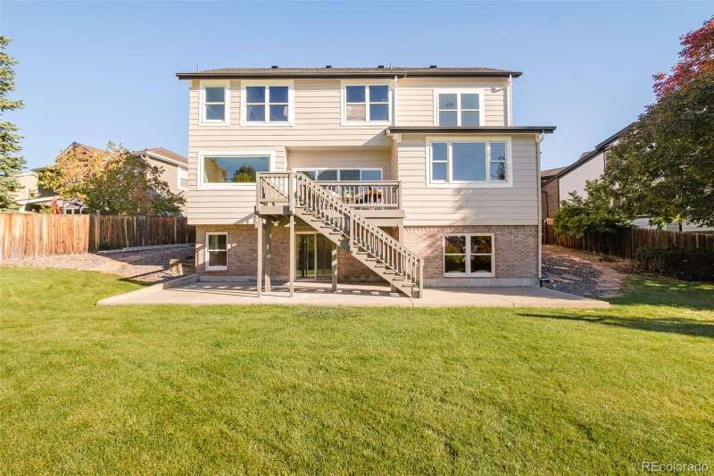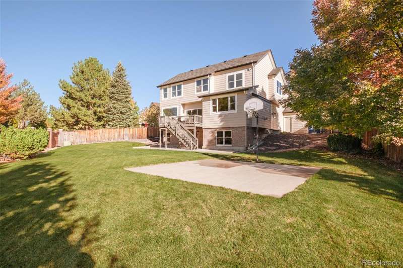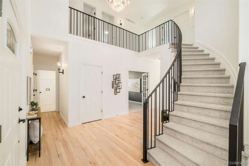Stunning renovations abound in this impressive home tucked away on a quiet CUL-DE-SAC in Lone Tree! As you enter the home, the personality captures you immediately with the soaring foyer, a NEW wrought iron staircase, both setting the tone for the elegance throughout. Formal living and dining rooms provide an inviting space and offer a highly flexible floor plan with rich hardwood floors that guide you into the gourmet kitchen featuring sleek cabinetry & countertops, a picturesque window; and a generous eat-in nook that is enhanced by a NEW 4-PANEL SLIDING GLASS DOOR capturing the incredible lot & VIEWS! The cozy family room is showcased by a gas-log fireplace with custom mantle & accents. The MAIN FLOOR BEDROOM or spacious home office, with an en-suite 3/4 bathroom & laundry room round out the main floor. As you venture upstairs, timeless elegance and attention to detail continues into the PRIMARY SUITE where views are enjoyed from nearly every window, and a luxurious 5-PIECE BATH provides stylish and sophisticated aesthetics that are "on point" with current trends. Three additional bedrooms and a large full bath offer high-quality workmanship that is evident in the trendy finishes. The finished WALK-OUT BASEMENT provides numerous options for customizing your ideal living setup. Extending the home's versatility, complete with a second family room, two spacious bedrooms, an oversized 3/4 bath, & flex space ideal for a gym or in-home office. This exceptional interior seamlessly blends sophistication, comfort, and functionality-an absolute must for today's living! The comfortable deck and huge yard add to the allure of this property. Close access to Bluff Regional Park Trail, Lone Tree Golf & Tennis Clubs, Lone Tree Rec Center, Lone Tree Arts Center & Library, & the Light-Rail Station-all just minutes away. The neighborhood is served by highly rated schools & is recognized as one of the most highly desirable areas.