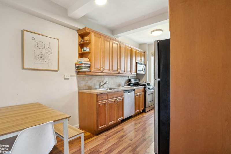 Large true 3BR/2BA with triple exposures! Huge living/dining, renovated windowed eat-in kitchen, 3 as built real bedrooms and 2 windowed baths! Views to downtown skyline, trees and sky. 8'7 beamed ceilings, wood floors throughout and lots of closets.
