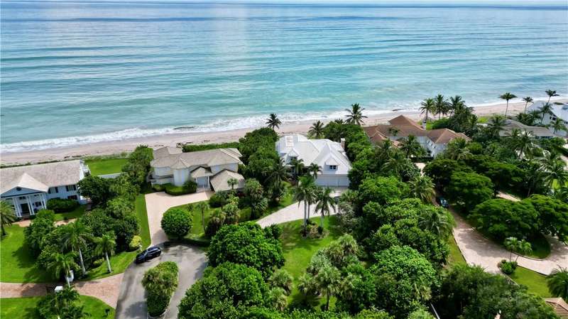 Tropical Oceanfront Luxury!Set on over an acre of private and direct oceanfront, this extraordinary residence in Village Shoresa unique and gated enclave of just 20 homes in the heart of Indian River Shoreshas been beautifully transformed for todays coastal lifestyle. A gorgeous winding travertine driveway leads to a 3-car air-conditioned garage and a tropical paradise of lush landscaping, sweeping lawns, and a pool overlooking the Atlantic. Inside, the home offers 5 bedrooms, 6 full baths, an oceanfront office, and a versatile flex room. Elegant natural stone and oak flooring, refined finishes, and walls of glass frame uninterrupted beach and ocean views. The chefs kitchen, reimagined with Sub-Zero, Wolf appliances, and dolomite countertops with a leather finish, flows seamlessly into inviting living and dining spaces designed for both entertaining and quiet retreats. Every detail reflects thoughtful updatingfrom limestone baths and marble vanities to refined lighting, custom doors, and coastal-inspired design elements. Outdoors, a spacious lawn leads to dune plantings and a wide, uncrowded beach to create the perfect private retreat, with room to expand or build a guest home.Once owned by Broadway legend Bernadette Peters, this residence carries a touch of performing arts history, blending artistic legacy with timeless coastal sophistication.Walk to the quaint Village Shops boutiques and restaurants, and enjoy a quick 20-minute drive to Vero Beach Regional Airport, offering direct flights to New York, Boston, Charlotte, Washington, D.C., Providence, Hartford, and Long Island.Just minutes from Ocean Drives dining and cultural venues, this rare oceanfront haven offers unmatched privacy, exclusivity, and the relaxed elegance of Vero Beach living.Sizes approx./subj. to error.