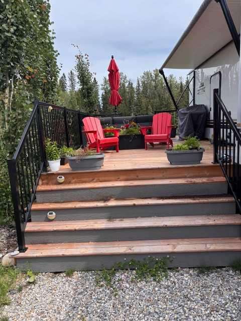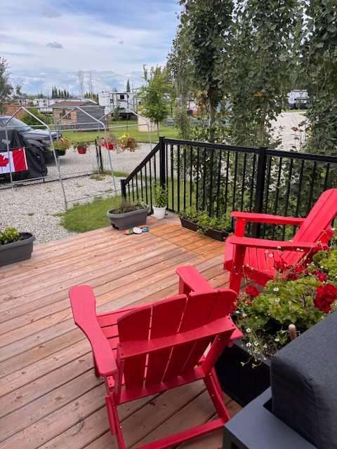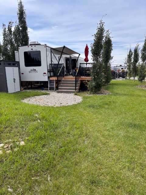 SUNDRE RIVER RESORT OFFERS LOT # 135 - (5858 sq ft ) Included Forest River Cottage (2022) complete with Full Sized Fridge, Gas Stove, Built in Dishwasher (Fisher&Paykel), Washer/Dryer, TV x 2, Air conditioning, Central Vac and Attachments! Tons of storage and pull outs in the Kitchen cabinets too. Bunkhouse fully Powered, Completely finished Inside. Move In Ready just bring your clothes and Pots and Pans! Lot is right in the Back of The Park so tucked away backing onto Greenspace, Deck is approx 16 x 28 built on Concrete Piles., Fully Fenced as well. Bunkhouse is really a Thing of Beauty cuz it sleeps 4 comfortably, Powered and tucked in the back so kids can have their own space. Sundre River Resort has a truly Family Feel with events all the time that are sooo fun! Resort offers an Amazing Cookhouse and BBQ Area ( You gotta see it) State of the Art Bathrooms with Huge Showers , Laundry service here too (Free). Share Ownership offered with an Awesome President and Board making sure everything runs smoothly. Lot maintenance fees are $180/month which includes property taxes, sewer, water, electricity, garbage disposal., wifi too. Did I mention Bearberry creek is a Beautiful Water Feature that runs thru the park. On occasion you can see people bringing their lawn chairs to sit in the river to cool off. Possession negotiable.
