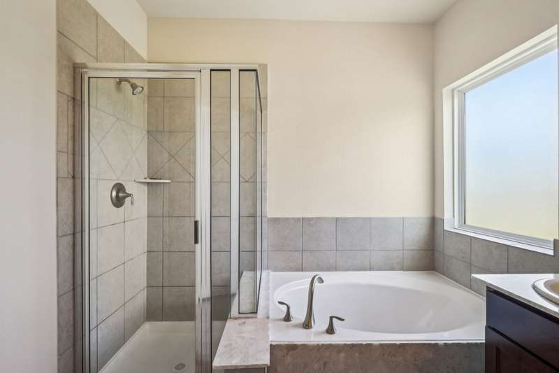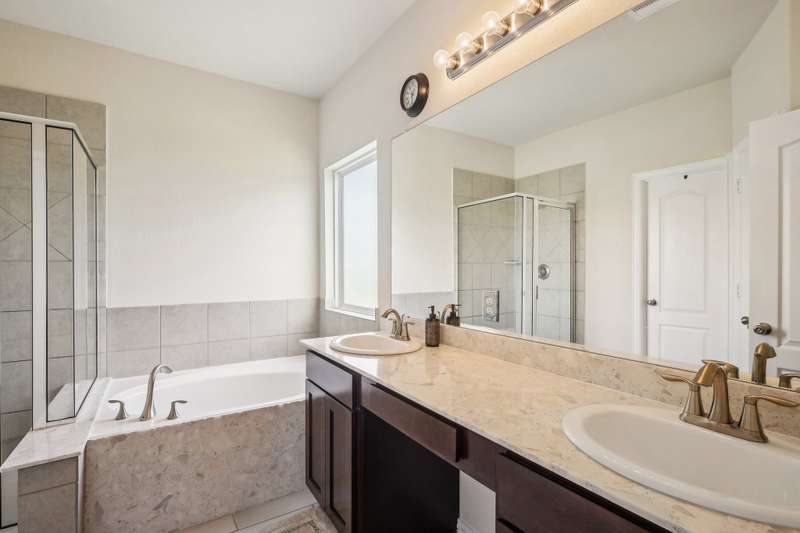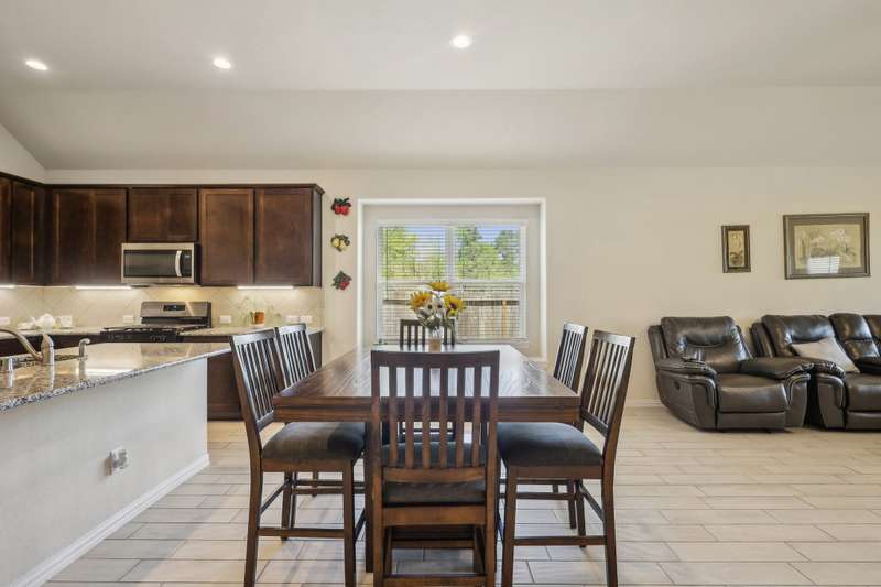 Ready for Immediate Move-in. Impeccable condition, lightly lived in flowing 1-story. The Subdivision Features Multiple Parks and Walking Paths. Upon entering, be amazed with the enormous kitchen, tons of stunning 42-inch cabinets, granite counters, island accommodates multiple seating + undercounter lights. A true Entertainers Delight! Attached is an adjoining breakfast area flowing to the large family room & great TV wall. Tall Ceilings,Tile Floors throughout the wet & living areas. The spacious dining room at the entrance could also be a study. Lots of natural light, split floor plan. Primary bedroom at the back offers a garden tub, separate shower 2 vanities, walk-in closets. The highlight is the Spacious backyard w/Covered Patio.