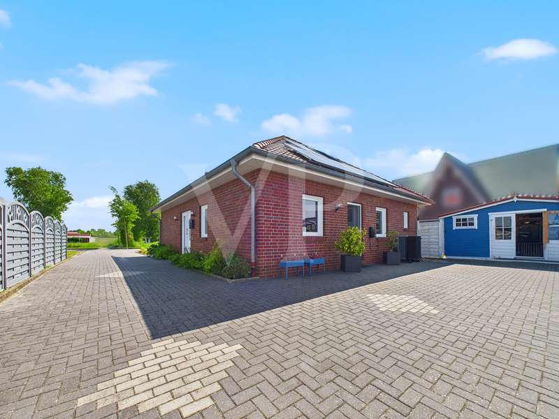 For sale is a modern and very energy-efficient bungalow that was built in 2015 and extensively modernized in recent years. The living space of around 125 m² extends mainly over the first floor and offers enough space for a family. The bungalow is situated on a spacious plot of approx. 788 m², which offers plenty of privacy and open space in its own small park-like garden. The house comprises a total of four rooms, including two bedrooms on the first floor. Two modern full bathrooms, which were modernized or newly built in 2020, ensure a high level of comfort. The as-new fitted kitchen with modern appliances leaves nothing to be desired and invites you to cook and linger. The entire first floor is equipped with underfloor heating, which is operated by an energy-efficient heat pump. This was installed in 2022 and ensures a pleasant living climate with low operating costs. Special highlights of the property are the fully converted attic and the integrated passenger elevator, which was installed in 2019 and enables barrier-free living. When planning this property, great importance was attached to energy efficiency: The photovoltaic system with a capacity of 5.18 kWp and a battery storage of 10 kWh was installed in 2022 and helps to reduce energy costs. There is also a wallbox for charging an electric vehicle. Another feature of the property is the electric external blinds, which were installed in 2020, as well as the pleated insect screens on the windows. These provide optimum sun and privacy protection and further increase living comfort. For technology enthusiasts, the bungalow offers high-quality fittings and practical, state-of-the-art solutions. The outdoor area impresses with a summer garden, a garden shed and a greenhouse, which were modernized in 2020. Here you can relax and enjoy gardening or simply experience nature. The garage is equipped with an extra-high electric garage door, which was installed in 2020 and offers enough space for a motorhome. There is also an integrated workshop in the garage for handyman activities. The property is in a quiet yet very central location with excellent connections to shopping facilities within walking distance. This combination of modernity, comfort and well thought-out details make this bungalow perfect for anyone looking for a modern, efficient and comfortable home. Potential buyers are invited to come and see this impressive property for themselves. Arrange a viewing appointment and experience a bungalow that impresses with its well thought-out planning and high-quality modernizations.