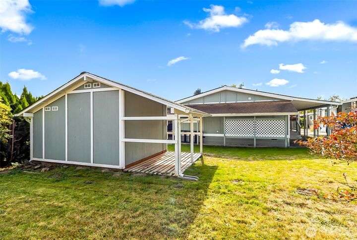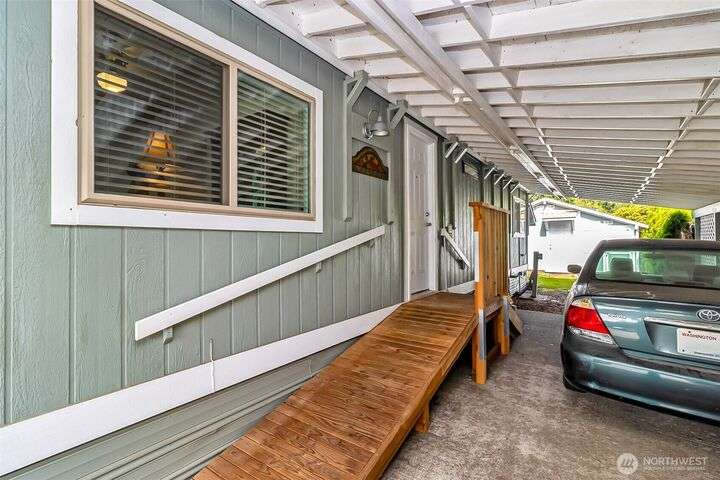 Immaculate 2-bedroom, 2-bath, 1,396 sq ft home in the desirable 55+ Cherry Hill Estates. Features include a light-filled Living Room & Dining Room, a well-appointed Kitchen with white cabinets, bar seating, newer glass cooktop, new dishwasher and lightly used oven. Large Primary suite offers walk-in closet and private bath, plus a spacious 2nd bedroom & full hall bath. Beadboard accents add charm, while laminate flooring and faux wood blinds create a clean, modern feel. Laundry Room with Washer/Dryer. Beautiful Landscaping, extended Front Porch, oversized 2-car Carport with custom Ramp, and double Shed for extra storage. Move-in ready and meticulously maintained, this home combines comfort, convenience, and style in a welcoming community.