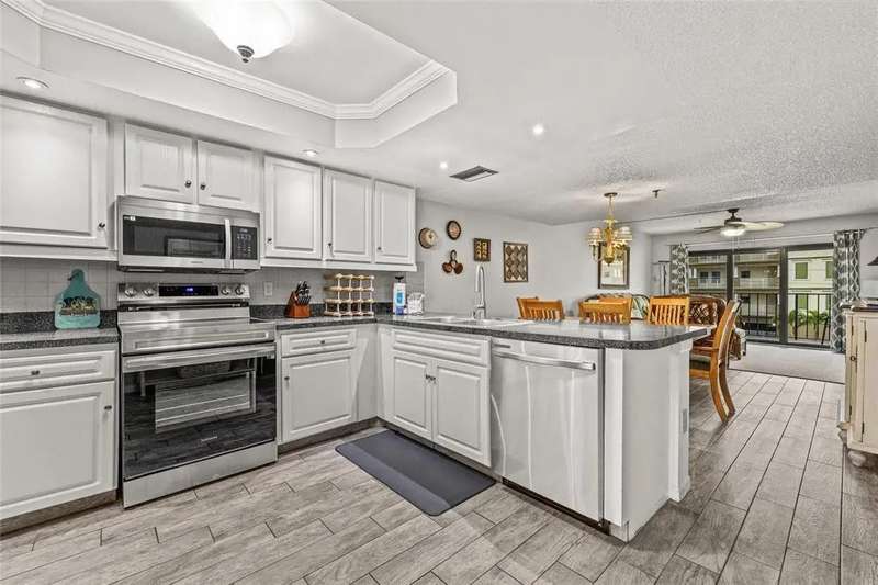 Discover your dream beach retreat in this charming, fully furnished 1-bedroom, 1.5-bath condo — the perfect escape for sun-soaked days and peaceful coastal evenings. Step inside to find a beautifully updated interior with an easy, open flow throughout. The kitchen shines with brand-new stainless steel appliances, including a range, refrigerator, dishwasher, and microwave. Enjoy cooking your favorite meals while the ocean breeze drifts through the newer pocket-style sliding glass doors. For added convenience, a newer stackable washer and dryer and a brand-new HVAC system have been installed, ensuring comfort and ease of living year-round. Storage and parking are a breeze with a spacious 12’ x 20’ garage — perfect for beach gear, water toys, or keeping your vehicle protected from the Florida sun. Located just steps from the pristine sands of Madeira Beach, this condo places you directly across the street from one of Florida’s most beloved stretches of coastline. Spend your days lounging on the beach, walking along the shore, or enjoying endless water adventures — all right at your doorstep. Whether you’re seeking a personal getaway or a lucrative investment property, this condo offers both comfort and opportunity. Its prime location and desirable amenities make it ideal for vacation rentals or your own private paradise. Don’t miss this chance to own a piece of the Gulf Coast lifestyle. Schedule your private showing today and make 14001 Gulf Blvd #304 your new seaside sanctuary.