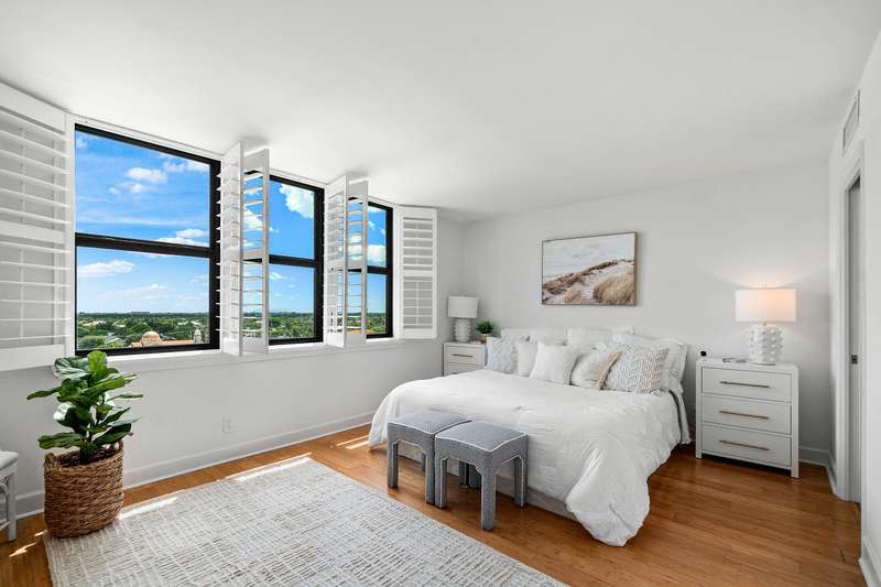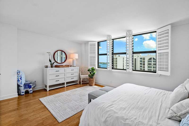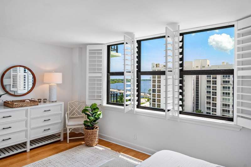 Welcome to the perfect pied a terre. Enjoy sensational views of the Intracoastal, Palm Beach and Atlantic Ocean. Sunny and bright residence with a south-facing exposure. Beautifully renovated 1BR/1.1BA condominium features new bamboo flooring, plantation shutters, lighting, bathrooms, and impact glass. New gourmet kitchen includes quality cabinetry, stainless steel appliances, and granite countertops. Spacious living and dining space opens to a covered balcony for outdoor living and entertaining. Portofino South is located along the prestigious S Flagler Dr walking path, just across the water from historic Mar-a-Lago. Full service, pet friendly building includes pool, parking, 24-hour doorman, and onsite manager. Short distance to the beach, downtown, Norton Museum, shops and restaurants.