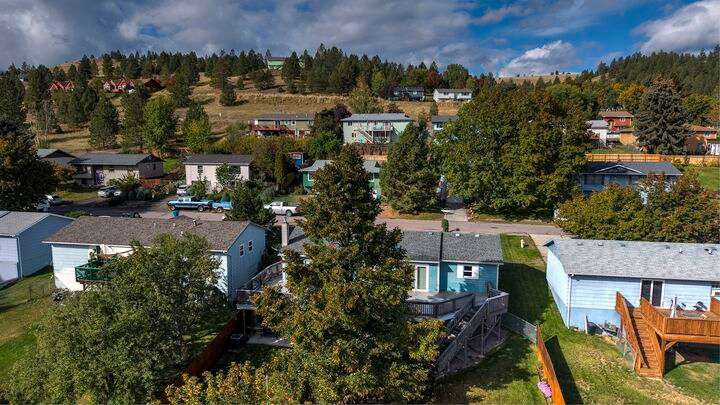 Discover a rare opportunity in the heart of Lolo — this charming 3-bedroom, 1-bath home is on the market for the first time since 1979! Built in 1975 and lovingly maintained, the home offers 1,040 sq. ft. on the main level plus a 960 sq. ft. walk-out basement ready for your finishing touches. Nestled on an 8,400 sq. ft. lot adorned with mature trees, this property offers shade, privacy, and a true sense of tranquility. Enjoy incredible views of the surrounding mountains and valley from the large wrap-around deck — the perfect place to unwind or entertain. The fenced backyard provides a private retreat for pets, play, or gardening, while the single-car garage adds convenience and storage. With timeless character, solid construction, and a setting that’s hard to beat, this is a special opportunity to own a home in a sought-after Lolo neighborhood. Listed at $475,000 — homes like this don’t come along often!