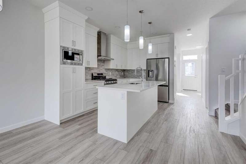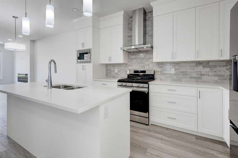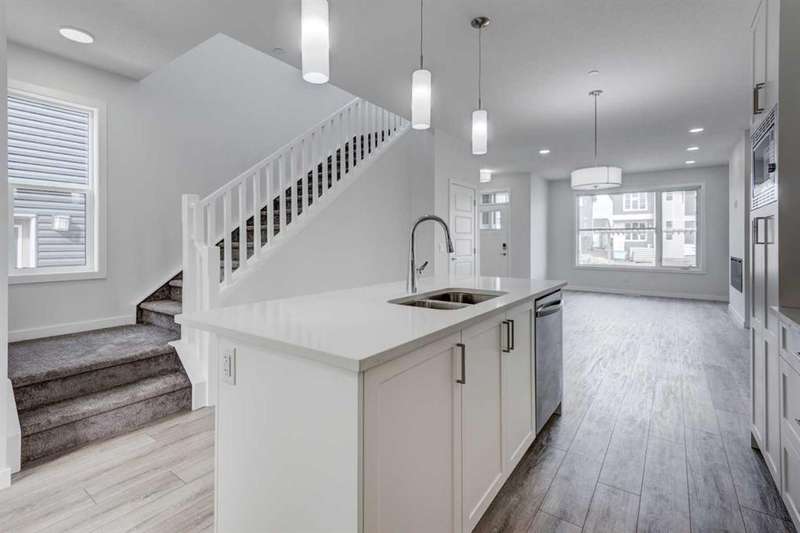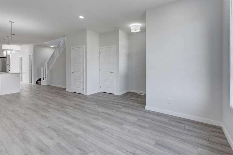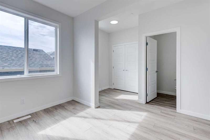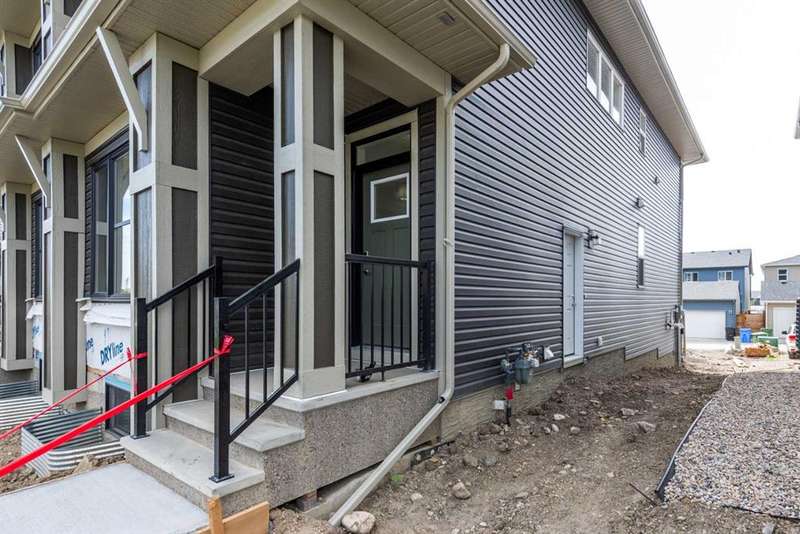Introducing the COHEN: an amazing, BRAND NEW attached home by EXCEL HOMES offering 1733 SF above grade. This home comes complete with a SIDE ENTRANCE, for ease of future development. Nestled in the vibrant Northeast community of Livingston. Step into a life of luxury and convenience with this stunning residence, where every detail has been meticulously crafted for comfort and style. Enjoy the benefits of living in an established neighborhood that brings a plethora of amenities right to your doorstep, along with swift access to major highways. The COHEN offers a sprawling 1733 square feet of thoughtfully designed living space, perfect for both families and entertaining. The open floor plan, complemented by neutral designer tones, creates a welcoming atmosphere that is both elegant and comfortable. The main floor boasts luxury vinyl plank flooring & 9' knockdown ceilings. The chef-quality kitchen stands as the heart of the home, equipped with ceiling-height cabinets, two banks of pot/pan drawers, and upgraded stainless steel appliances. The expansive engineered stone countertops, a large island with seating, and a convenient pantry make it a dream kitchen for those who love to cook and entertain. On the main floor you'll also find a FLEX ROOM that can be used as a home office, guest bedroom or playroom. and half bath for convenience.. Ascend to the second level where leisure meets luxury in the large central bonus room featuring pot lighting & vaulted ceilings — ideal for movie nights and family gatherings. The primary bedroom is a true retreat, boasting a walk-in closet and a spa-like ensuite. Additionally, two more generously sized bedrooms provide ample space and easy access to the main bathroom. The convenience continues with a laundry room (w/folding counter), strategically located on the same floor. The possibilities extend into the UNDEVELOPED basement - SEPERATE SIDE ENTRY. Step outside to a southeast-facing backyard that's perfect for relaxation and outdoor activities. You'll love the convenience of your rear detached garage 21x12 w/additional gravel parking pad. Ensure the security of interior sprinkler system to main and upper floor. Sod will be provided to front and back yards. Don't miss the chance to own this never-lived-in gem with quick possession available. Experience the blend of luxury, comfort, and convenience in Livingston—welcome to your new dream home at the COHEN.