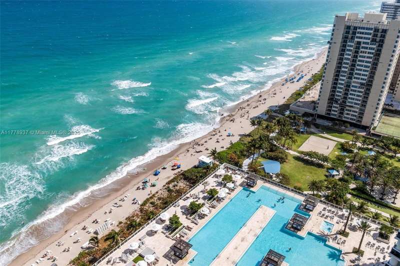 Elegantly furnished, this stunning residence showcases captivating ocean and Intracoastal views. Offering 2 bedrooms, an enclosed den, and 3 bathrooms, the unit enjoys desirable southeast exposure. The primary suite features a luxurious Jacuzzi, while the European-style kitchen with granite countertops and marble flooring throughout enhances the sophisticated ambiance