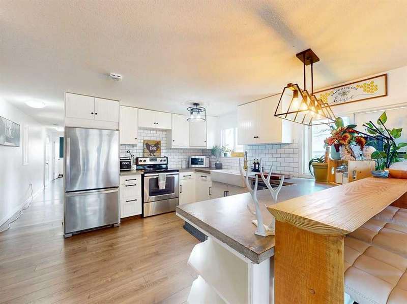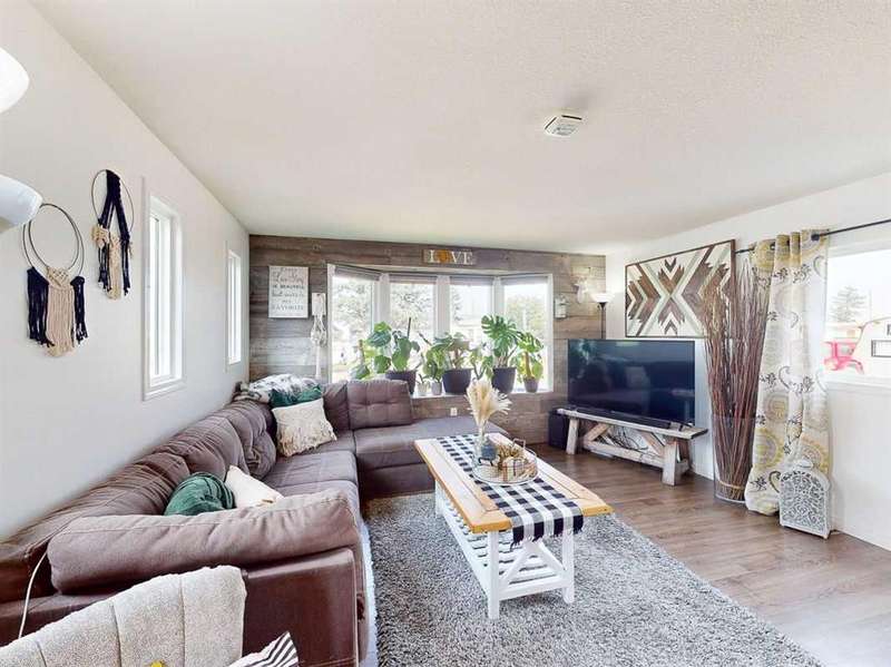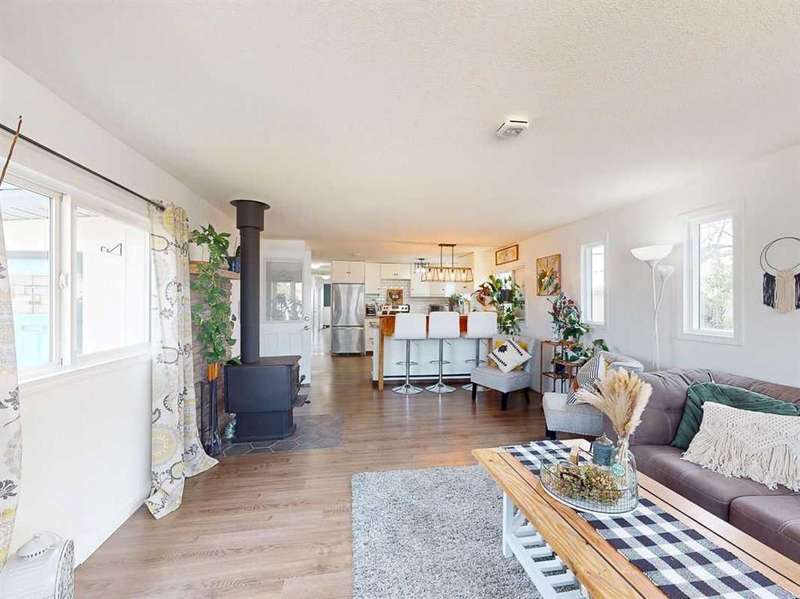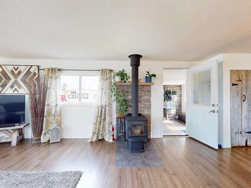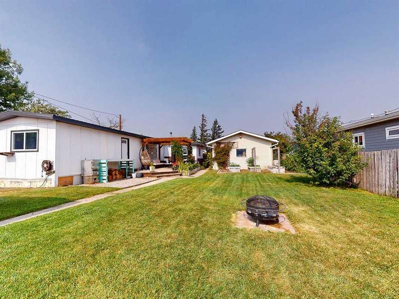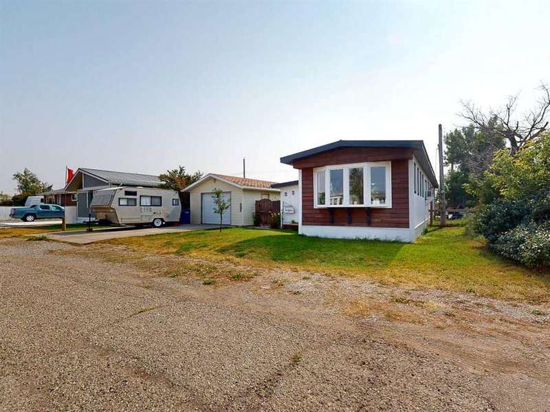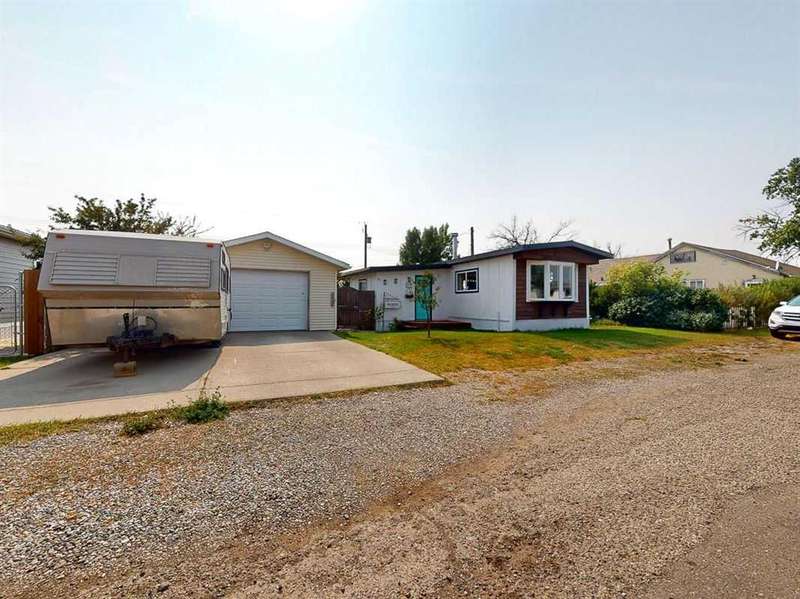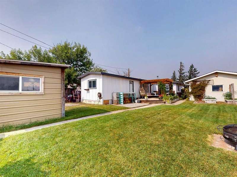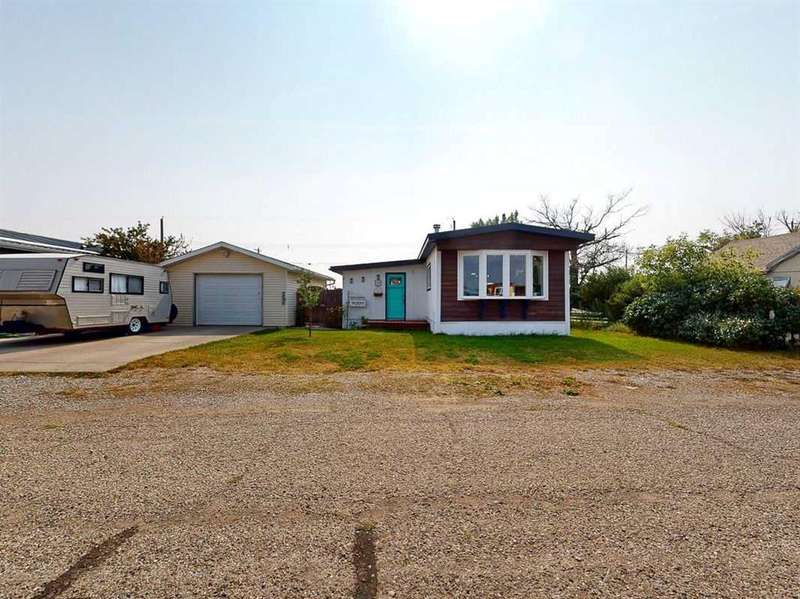 Move in before the snow flies! This delightful, tastefully updated two bedroom, one bathroom home knocks value for money right out of the park! Located in the up and coming south side of booming Fort Macleod, this home is literally ready for you to move into and just enjoy your life. That includes a garage on your very own 66 x 99 foot lot, with plenty of room to grow your own fruit and veggies just off your shaded private deck! Walk through that pretty turquoise door into your entry / flex space, with deck access and views to the sunny south facing back yard. Warm your toes by the cozy wood stove as you enter the main living area, with living room, dining and kitchen combined. This showstopper of a kitchen features ample counter and storage space, a breakfast bar, beautiful modern lighting and stunning custom made concrete countertops. Down the hall, you’ll find two large bedrooms, and a beautifully designed four piece bathroom with custom tiling, a soaker tub, a double vanity with sweet bowl sinks for each of you, perched atop another amazing concrete counter. Everything about this home invites you to relax and enjoy the spa-like atmosphere! While this beauty’s bones may be older, it has literally been updated top to bottom, including drywall throughout, new Steel roof, soffit and fascia, new siding, skirting and insulation, new furnace, hot water tank, bathroom, flooring, kitchen and appliances, pex plumbing, 100 AMP electrical service, windows and doors inside and out. Outside you’ll also find a new deck, complete with pergola, raised bed garden boxes, fruit trees, RV parking and lots of room for your four legged friends. What’s not to love? Call your favourite REALTOR® to view this sweet home today!