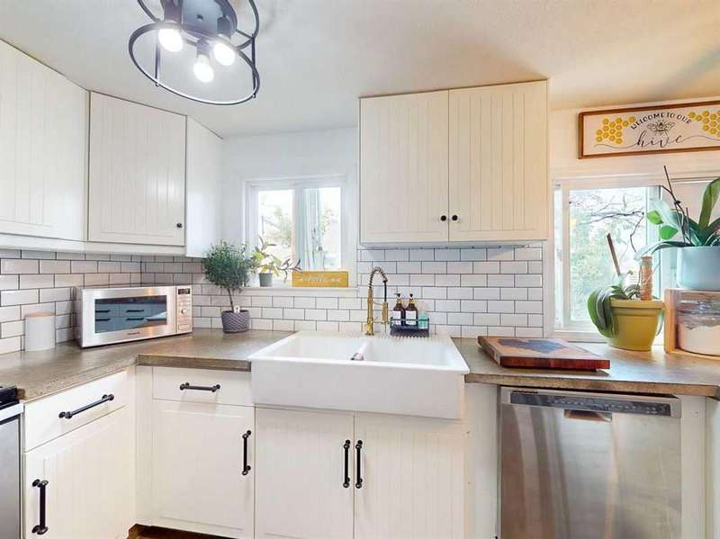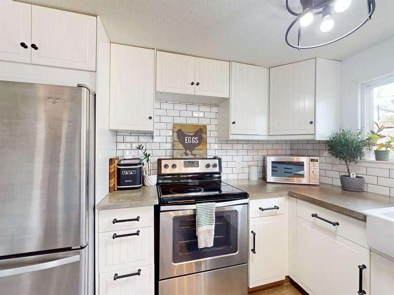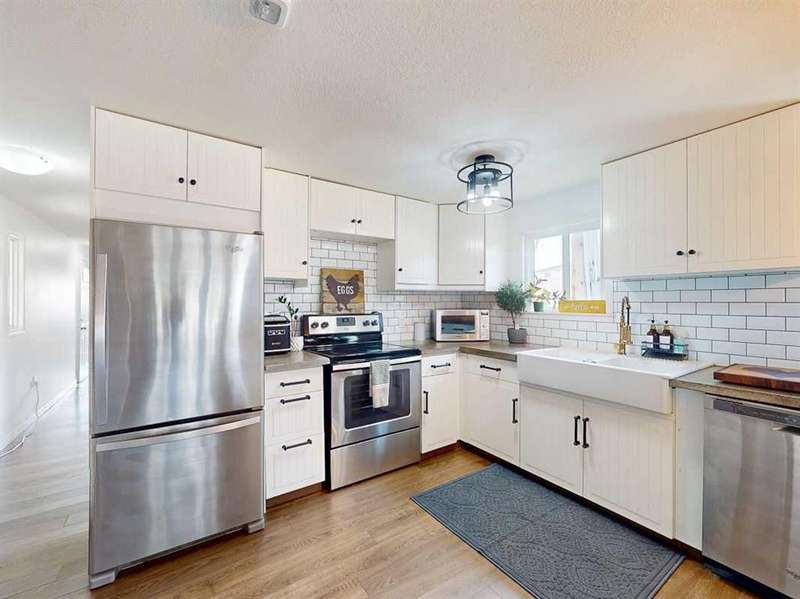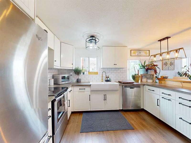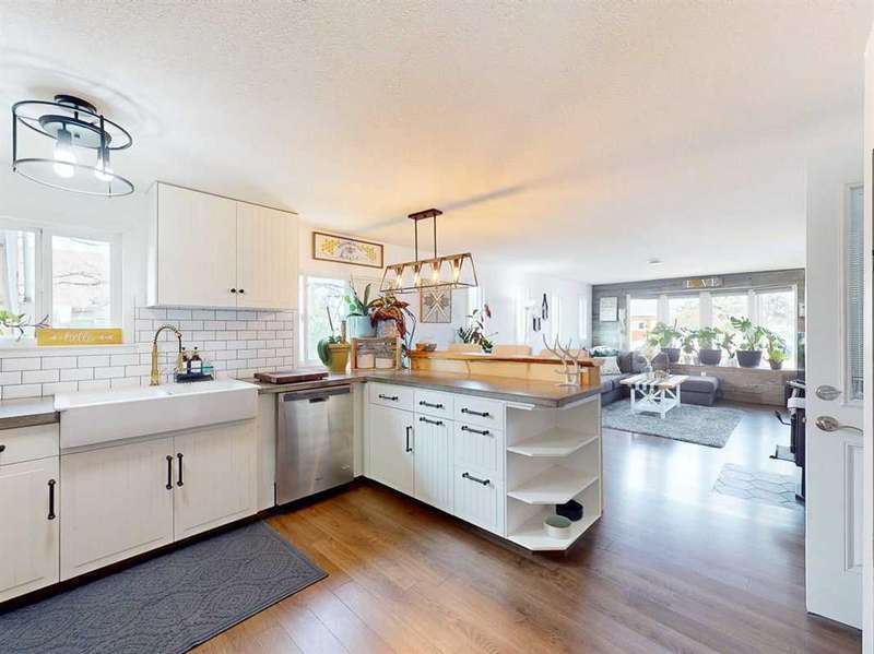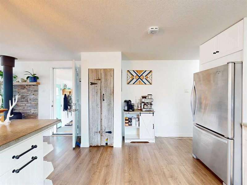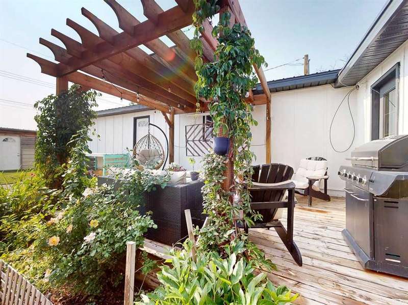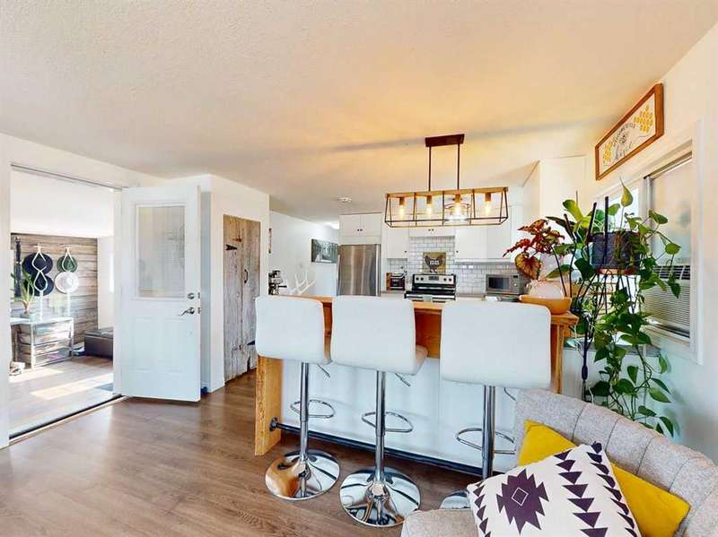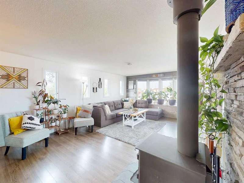 Move in before the snow flies! This delightful, tastefully updated two bedroom, one bathroom home knocks value for money right out of the park! Located in the up and coming south side of booming Fort Macleod, this home is literally ready for you to move into and just enjoy your life. That includes a garage on your very own 66 x 99 foot lot, with plenty of room to grow your own fruit and veggies just off your shaded private deck! Walk through that pretty turquoise door into your entry / flex space, with deck access and views to the sunny south facing back yard. Warm your toes by the cozy wood stove as you enter the main living area, with living room, dining and kitchen combined. This showstopper of a kitchen features ample counter and storage space, a breakfast bar, beautiful modern lighting and stunning custom made concrete countertops. Down the hall, you’ll find two large bedrooms, and a beautifully designed four piece bathroom with custom tiling, a soaker tub, a double vanity with sweet bowl sinks for each of you, perched atop another amazing concrete counter. Everything about this home invites you to relax and enjoy the spa-like atmosphere! While this beauty’s bones may be older, it has literally been updated top to bottom, including drywall throughout, new Steel roof, soffit and fascia, new siding, skirting and insulation, new furnace, hot water tank, bathroom, flooring, kitchen and appliances, pex plumbing, 100 AMP electrical service, windows and doors inside and out. Outside you’ll also find a new deck, complete with pergola, raised bed garden boxes, fruit trees, RV parking and lots of room for your four legged friends. What’s not to love? Call your favourite REALTOR® to view this sweet home today!