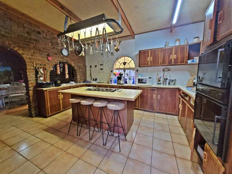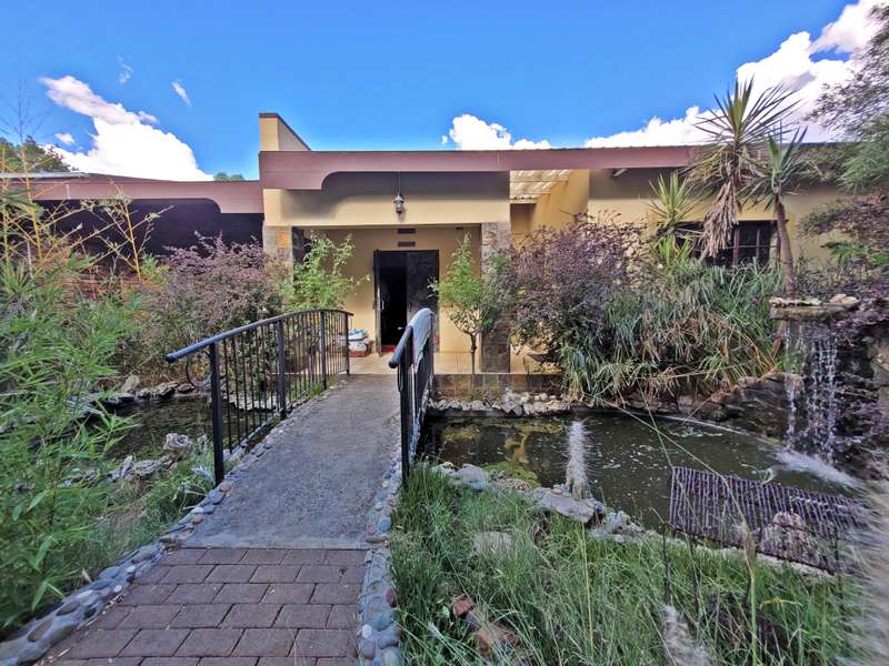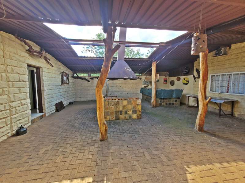 ***Exclusive Mandate*** Discover the charm of this 8.5-hectare small holding, offering a perfect blend of rustic elegance and business opportunities. Nestled amidst nature, the main house, though not modern, boasts high ceilings and a touch of luxury with a jacuzzi at its entrance. With 4 bedrooms and 2 bathrooms, the main house exudes comfort and space. The kitchen, while not modern, features built-in cupboards, a scullery, and a laundry room, catering to practical needs. Above the main house, the first flatlet provides a cozy retreat with a kitchen, lounge area, and 2 bedrooms, complemented by a well-appointed bathroom. The second flatlet offers an open-plan kitchen and lounge, multiple bedrooms, and 2 bathrooms, complete with a private braai area for outdoor gatherings. The property includes a guest house with 5 rooms, each featuring an en-suite bathroom, though currently not operational. A reception area and conference space add versatility to the property, providing potential for various business endeavors. The butchery, though not in operation, holds promise, accompanied by a functional cold room capable of accommodating 8 beef carcasses. For those with a knack for craftsmanship, the workshop and store offer ample space to bring creative ideas to life. The property is well-equipped with parking space, providing convenience for residents and guests alike. Business rights come included, opening up a myriad of possibilities. Water needs are met with 3 boreholes, one of which yields a substantial 18 liters per second. An irrigation system ensures that the land stays vibrant and lush. Whether you're seeking a peaceful residence or envisioning a thriving business venture, this small holding offers a canvas of potential waiting to be explored.