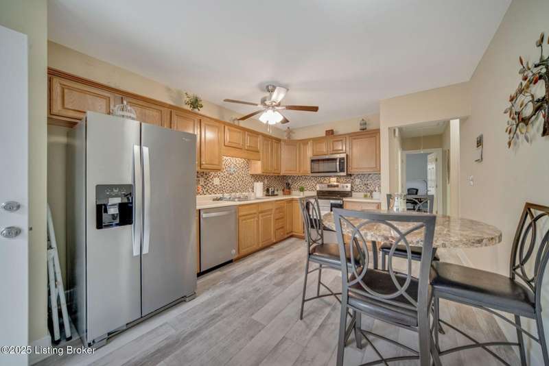 Welcome home to this beautiful move-in ready 2 bedroom, 1.5 bath condo with laundry hookups. Natural lighting abounds. The eat-in kitchen has newer stainless steel appliances that remain as well as access to a very private patio and courtyard out the back door, which also gives close access to your parking. The Primary bedroom has a large walk-in closet and there is also additional storage in the pull-down attic space in hallway. Out the front door is a beautiful shared courtyard with neighbors. Monthly maintenance fee includes water, trash, snow removal, grounds keeping, exterior maintenance, and master insurance. Goins Manor is close to shopping, grocery, restaurants, Jefferson Mall, Gene Snyder, and I-65. Schedule your showing today!