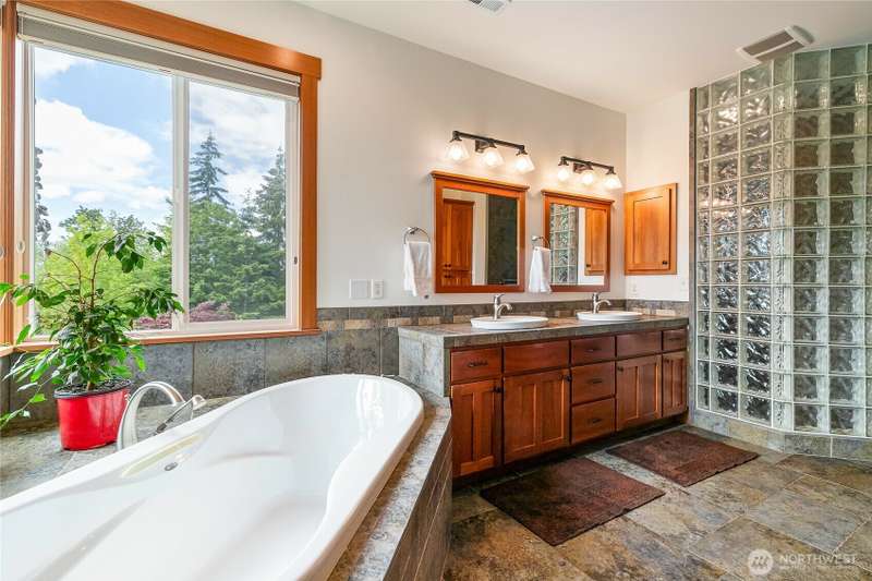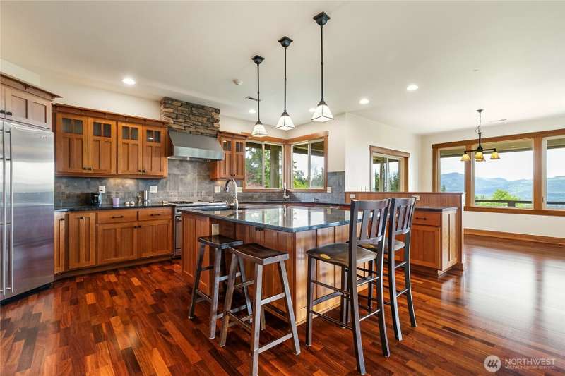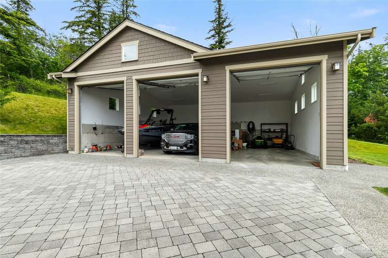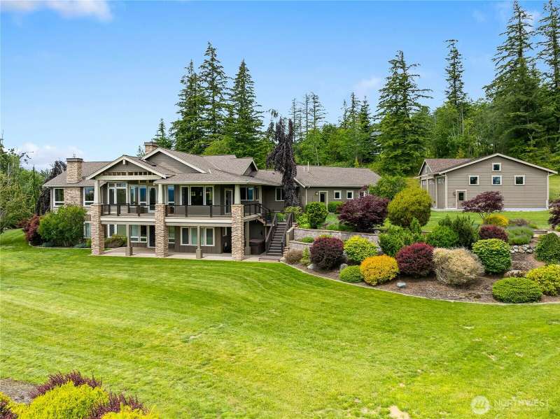 Discover unparalleled luxury in this stunning Northwest contemporary home sprawled over 3 acres. With over 5000 sqft of impeccably crafted living space, every detail reflects quality & elegance. As you enter, be greeted by breathtaking views that stretch beyond imagination. The concrete deck is an entertainer's dream, offering ample space for gatherings against a backdrop of Northwest beauty. The kitchen and great room are designed to showcase panoramic views. The main floor features a primary suite and a spacious office, perfect for relaxation and productivity. Enjoy abundant sunshine and a massive, finished shop for hobbies or storage. Outside, the fire pit overlooks a serene Lake Whatcom and Bellingham Bay. This home is a masterpiece.