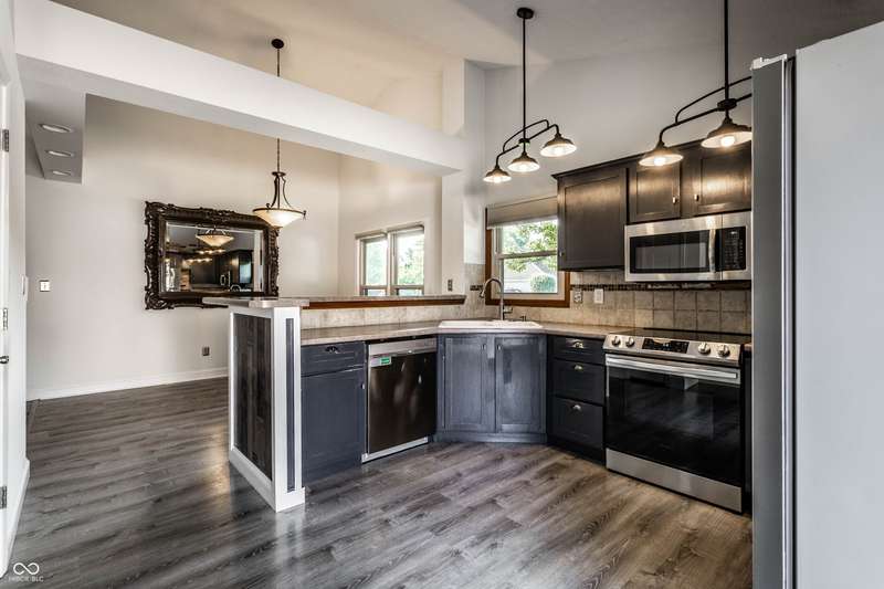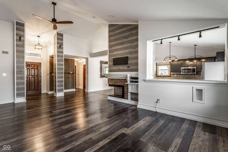 Welcome to this spacious open 3-bedroom, 2-full bath home in the sought-after Chesapeake neighborhood, nestled alongside the prestigious Indian Lake Private Country Club and Golf Course. From the moment you enter, you'll be greeted by soaring cathedral ceilings that enhance the spacious feel and allow the home to be filled with abundant natural light. At the heart of the home is a stunning great room with lots of exterior windows, new carpet installed 8/26, updated vinyl plank flooring, cozy decorative fireplace, a shared bar area with the kitchen ideal for entertaining, casual meals, or connecting with guests as you cook. The kitchen also features updated vinyl plank flooring, breakfast bar, updated cabinets and a pantry. The dining area boasts a custom built-in bench seat with storage, perfect for cozy meals and keeping things tidy. At the end of your day, retreat to the large updated primary suite, where you'll find raised ceilings, built-ins, walk-in closet and a primary bath with double vanities, neutral gray tile, and sleek glass shower doors-a serene and stylish escape. Two additional bedrooms which have been neutralized with removal of wallpaper and decorative wood trim offer flexibility for guests, a home office, or hobbies, and a full laundry room with a stacked washer & dryer adds everyday convenience. Step outside to the expansive patio and deck perfect for your morning coffee or evening beverage of choice. Located close to restaurants, shopping and other amenities, this could be home.