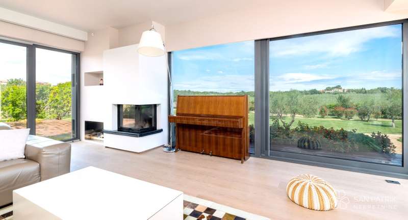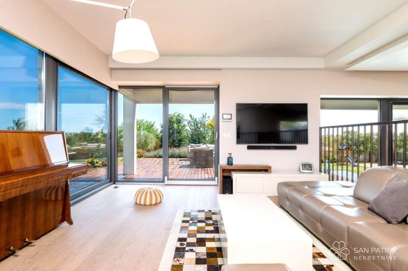 Nestled in a tranquil setting with breathtaking views of nearby olive groves on a plot of 5,000 m2,, this luxurious villa is situated just 500 meters from the sea in Umag, a charming town on the Istrian coast that captivates with its allure, diversity, and richness. This meticulously designed villa synthesizes the uniqueness of the entire region, offering a different Mediterranean experience.