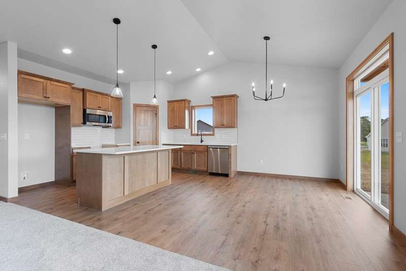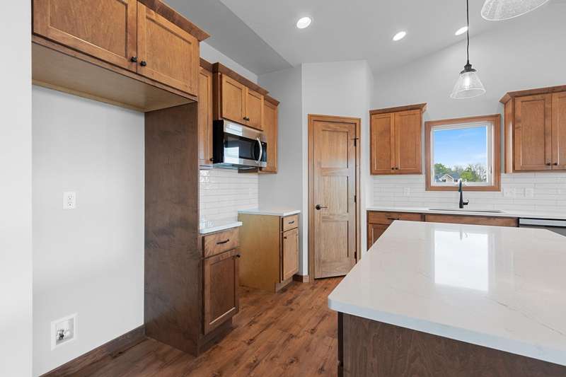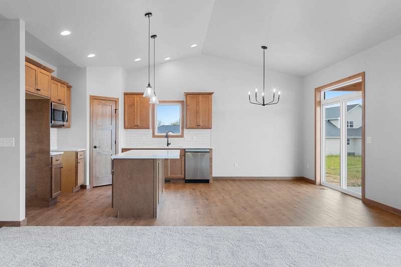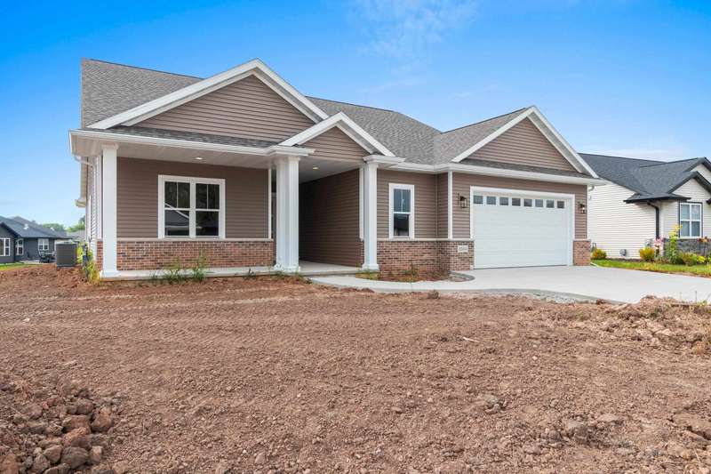 Another high-quality new construction by Van's Construction of Appleton. This is a new plan, Isabelle, that has never been built before in the De Pere area. This awesome floor plan offers 1720 sq ft, 3 bedrooms, 2 baths, spacious living room has a gas fireplace and is open to the dinette-kitchen area. Kitchen offers maple cabinets, quartz countertops, tile backsplash and center island. The primary suite has a large walk-in closet and private bath with double sink vanity. 1st floor laundry, open staircase to the egress lower level. Brick and vinyl exterior. Large backyard!