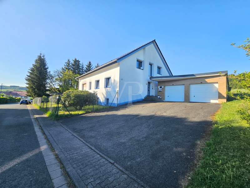 A panorama to fall in love with - and a house full of possibilities: In one of the most beautiful locations in the Hochtaunus region, right on the edge of a field and forest, you can enjoy an unobstructed view over the rolling hills of the region. This versatile property offers two spacious residential units, each with over 100 m² of living space (approx. 118 m² first floor apartment and approx. 106 m² top floor apartment) as well as an additional granny apartment in the basement with approx. 66 m² of living space. Perfect for families, multi-generational living or people looking for additional space for guests, a home office or for renting out. It is a unique retreat that combines nature, privacy, flexible usability and tranquillity. The house has been partially renovated in terms of energy efficiency and benefits from a renewed roof from 2007, modernized windows and full thermal insulation, which has contributed to good energy efficiency and increased living comfort. The apartment on the upper floor with modern fitted kitchen, cork floors in concrete look, daylight shower room and friendly living and sleeping area is in a well-kept condition and has a modern standard due to renovation work carried out approx. 2 years ago. The first floor apartment boasts a particularly spacious living room and direct access to the terrace and garden. All three units are currently let. The current annual rental income (cold) is around €22,000. The basement apartment, the first floor apartment, the stairwell, the heating system and the garages will be modernized after the purchase. Various cellar rooms, a double garage and several parking spaces as well as two garden sheds complete the offer. The property has a spacious, usable and almost secluded garden, which is beautifully ingrown. Here you can enjoy relaxing hours outdoors. This property combines spacious living with a fantastic location and is ideal for families or investors who value a harmonious living environment in a natural setting. The unobstructed view of the surrounding nature offers a special living experience for nature lovers and those seeking peace and quiet. See for yourself the many possibilities of this property and arrange a viewing.