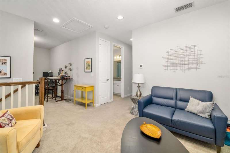 Welcome to effortless Sarasota living in this stylish 3-bedroom, 2.5-bath townhome with a modern edge and room to breathe. Built in 2018, this well-maintained interior unit features a first-floor primary suite—that offers everyday ease and privacy. The open-concept kitchen shines with quartz countertops, stainless appliances, and a large center island that brings everyone together, whether you’re hosting or relaxing at home. Upstairs, you’ll find two spacious bedrooms, a full bath, a versatile loft, and an additional bonus room—perfect for a media space, playroom, home office, or gym. Designed with today’s lifestyle in mind, the layout offers both function and flexibility. The roof was replaced in 2024 and the HVAC in 2023. Outside your door, enjoy the community’s resort-style pool with a large covered gathering area, plus a fenced dog park for your four-legged companions along with the added security of being in a gated community. Located just minutes from I-75, shopping, and Sarasota’s Gulf Coast treasures, this is where convenience meets comfort—and where your next chapter begins.