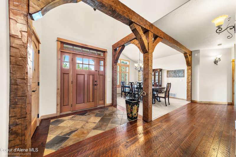 Incredible Craftsman style and QUALITY luxury home located a golf cart distance to Avondale Lake and golf course, Hayden Country Club and Hayden Lake. This high-end residence offers a spacious great room with a gorgeous fireplace, and tranquil Master suite with access to a private patio, a walk-in shower, and a soaking tub. Additionally, it offers a second bedroom, as well as a separate Guest suite. Stunning custom finishes include Knotty Alder trim, 3/4'' fir Rough-Circle Sawn floors, wood window shutters, and an exposed timber beam structure that brings North Idaho Charm. The Chef's dream kitchen with raw edge granite, Huntwood custom hickory cabinets, and modern appliances invite you to create gourmet treats! The living area flows outdoors onto a covered patio, where you can enjoy serene views of the spectacular backyard landscaping, which is fully fenced for privacy. This residence has been meticulously cared for and features a new roof, new water heater, new paint, and new applia A heated three-car garage is ready for all of your toys!