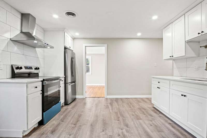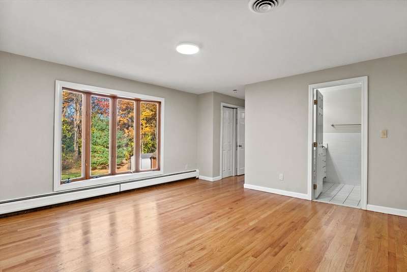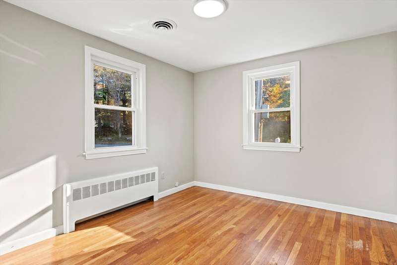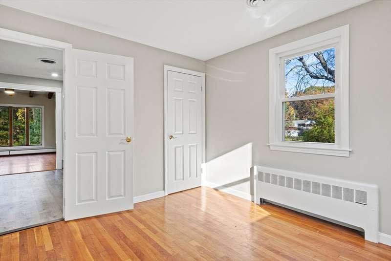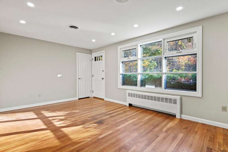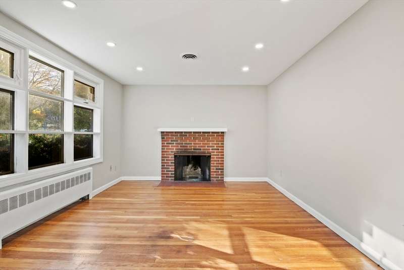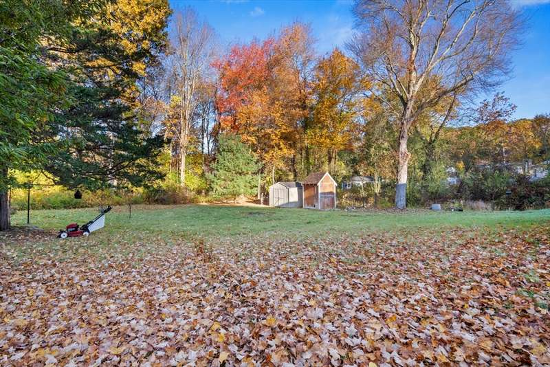 Welcome home to this beautiful, move-in-ready 4-bedroom, 2-bathroom Ranch offering single-level living at its finest. Enter inside to hardwood floors throughout. The sunny living room features a cozy fireplace, perfect for New England evenings. The kitchen is a chef's delight with granite countertops, stainless steel appliances, brand new high-end range fan over stove top and upgraded cabinets, flowing into a formal dining room with charming beamed ceilings. The spacious primary suite is a true retreat, boasting two closets and a private en-suite with a shower stall. Three additional bedrooms and a full bathroom complete the main level. Downstairs offers more flexible living space with a finished family room and a dedicated laundry area. Enjoy the outdoors on the back deck, with two handy storage sheds for your convenience. Complete with Central AC, this home is in a fantastic location with easy access to restaurants, shops, and major routes. Your new home is waiting!