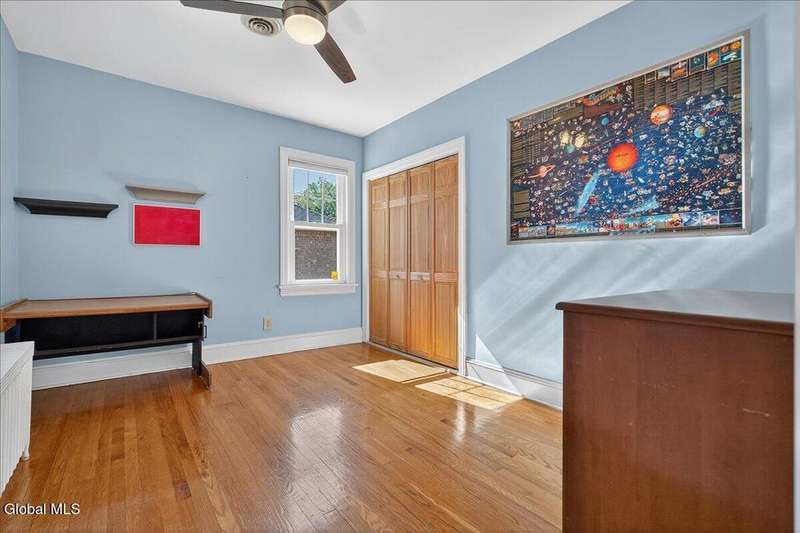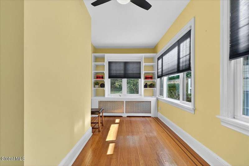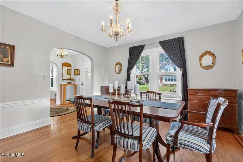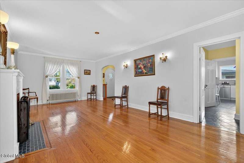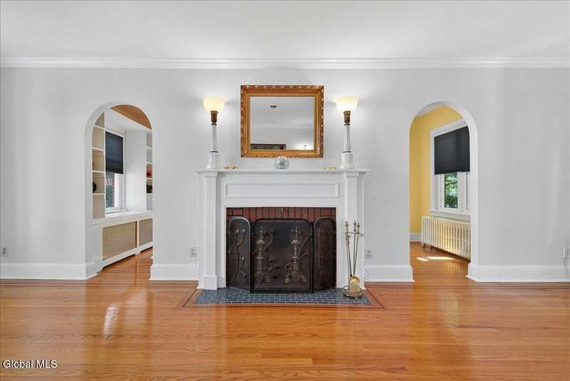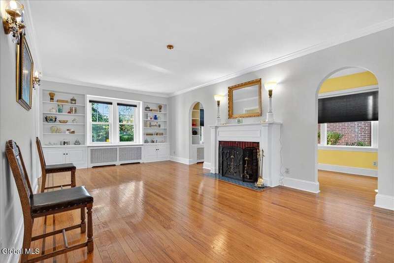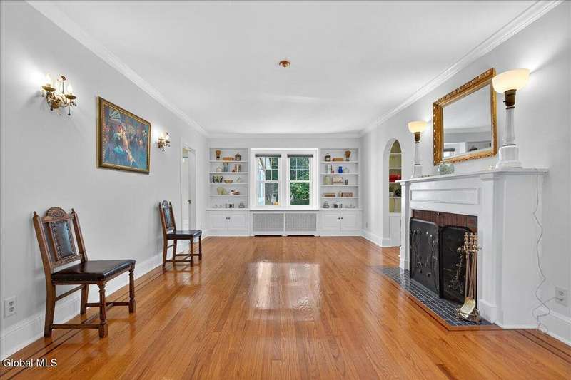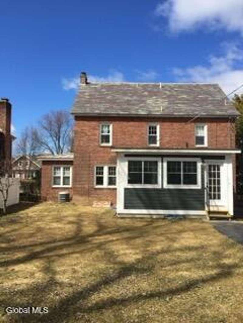 Where classic styling and modern updates meet in the distinguished Albany Buckingham Lake neighborhood. This well maintained large brick colonial is a perfect reflection of 1920's architecture. You will fall in love with the gorgeous archways and gleaming wood floors throughout. Inside, the owner has tastefully curated designer amenities and details, all you have to do is move in and enjoy the good life. This home sits on a generous private lot with mature privacy hedges, as well as composed organic gardens with flowers and edibles. Recent improvements include: central air, Ecobee smart thermostat, a 320 sq ft addition consisting of a laundry/mudroom, a beautiful 3-season room (exterior clad in James Hardy cement fiberboard). Main level features an updated eat-in kitchen w/white Shaker cabinets, granite counters, stainless appliances, an induction stove with air fryer/convection oven, an elegant dining room, spacious living room with built-in shelving and a wood burning fireplace, a sunlit office/den with built-in shelving, half bath, laundry/mud room and a 3-season/sunroom both with modern tiled floors. The second floor has four bedrooms with original woodwork and enlarged closets, a bright and modern bath with Icelandic marble. The attic is finished, perfect for a playroom or office. The full basement is unfinished and has new windows. The original laundry hook-ups are still in place with a washer (included) perfect for a back-up. Mechanicals include a sump pump, a well maintained Weil McLain boiler and newer gas hot water tank. The private backyard is great for entertaining, playing, gardening or pets and has a two-car garage, fence in the back, privacy hedges, fruit-bearing cherry trees, berry bushes and the covered compost open shed can also accommodate firewood. Enjoy great walkability and proximity to restaurants, schools/colleges, medical facilities, places of worship, recreational activities and Buckingham Pond Park.