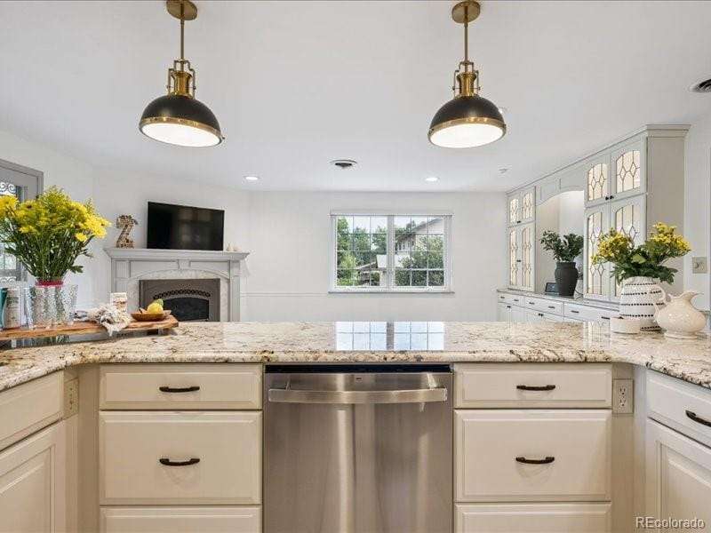 Discover this extraordinary ranch home, ideally situated on a private .46-acre cul-de-sac lot in the highly sought-after Thraemoor neighborhood. Quiet, secluded, and beautifully maintained, this residence combines timeless craftsmanship with modern updates and a floor plan designed for both comfort and entertaining. Step inside to find exquisite custom molding, woodwork, and built-ins throughout. The main level offers a formal living room and a dining room with deck access, perfect for gatherings. The remodeled kitchen features high-end appliances, granite counters, and 3 pantries, flowing seamlessly into the inviting family room with a cozy fireplace. The elegant primary suite is a true retreat with a gorgeous two-sided fireplace, remodeled spa-like bath with heated floors and a jetted tub. The main floor also includes three additional spacious bedrooms, updated full and half bath and main floor laundry. The walk-out basement is beautifully finished, boasting a fifth bedroom, full bath, den, family room, and a full kitchenideal for guests or multi-generational living. A three-car heated garage with custom flooring adds convenience and comfort. Enjoy spectacular outdoor living at its finest with a huge covered deck, welcoming front porch, covered patio, mature landscaping. New impact-resistant roof and replacement windows for peace of mind. This exceptional property is a rare opportunity to own a true gem in Thraemooroffering space, privacy, and luxury in one of the areas most desirable neighborhoods. Great access to the mountains, parks and trails, light rail, wonderful shopping and local restaurants.