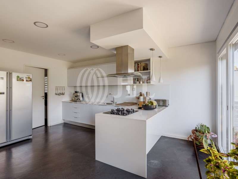 Moradia T4 com 410 m² de área bruta de construção, arquitetura contemporânea, bom estado de conservação, com garagem, inserida em terreno com 437 m², na Parede, Cascais. A moradia divide-se em três pisos, tendo no piso de entrada hall, lavabo social, sala de 74 m² com espaço exterior coberto de 10 m², área de estar e área de jantar, lareira a dar para os dois lados, janelas grandes e muita luminosidade. A cozinha, também neste piso, de 22 m², está totalmente equipada e tem zona de lavandaria e despensa. No piso superior, neste momento, há três quartos, sendo um em suíte, uma casa de banho de apoio aos quartos e um espaço aberto de 30 m² que poderá ser convertido noutra divisão. A moradia tem chão em madeira de bambu, aquecimento central, janelas de vidro duplo, estores elétricos, painéis solares e fotovoltaicos. No jardim, a dar para nascente, com chão em deck de madeira, encontramos uma zona de barbecue e um espaço lounge, onde existe a possibilidade de construir uma piscina. Garagem para seis carros e estacionamento exterior. Localizada em zona que proporciona a vida a pé, com todos os serviços, transportes e comércio. A 10 minutos walking distance da Estação Ferroviária e da praia. A 10 minutos driving distance da St Julian's School Carcavelos, da Nova SBE Executive Education e do Colégio Marista de Carcavelos. A 15 minutos dos Salesianos do Estoril, do Hospital CUF Cascais, do Hospital de Cascais. A 25 minutos do centro de Lisboa e do Aeroporto Humberto Delgado. Categoria Energética: A #ref:84230