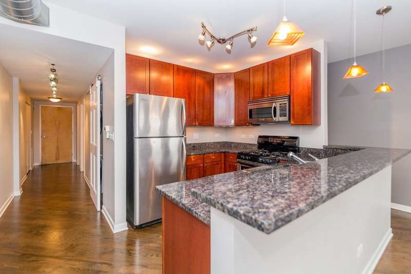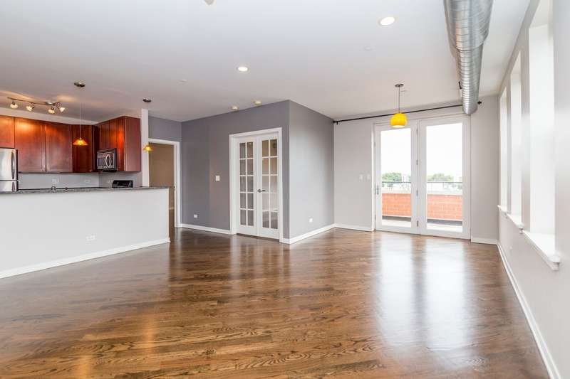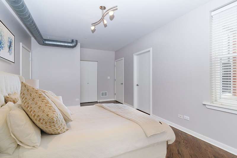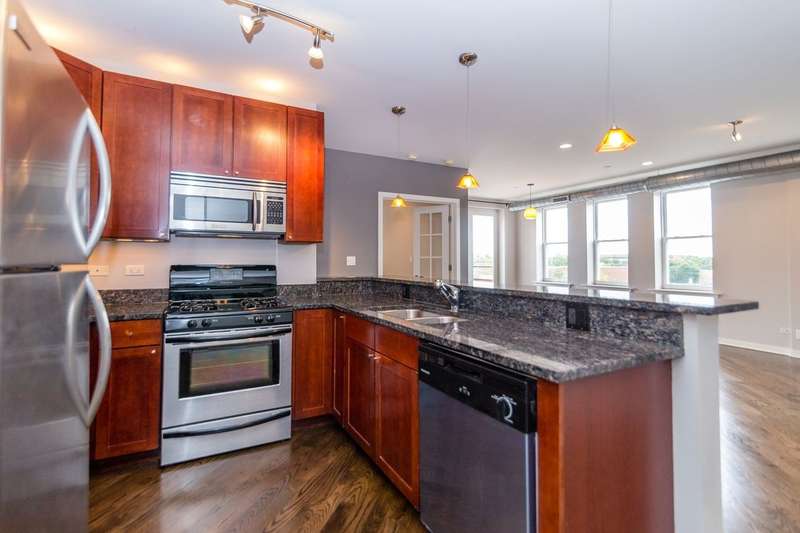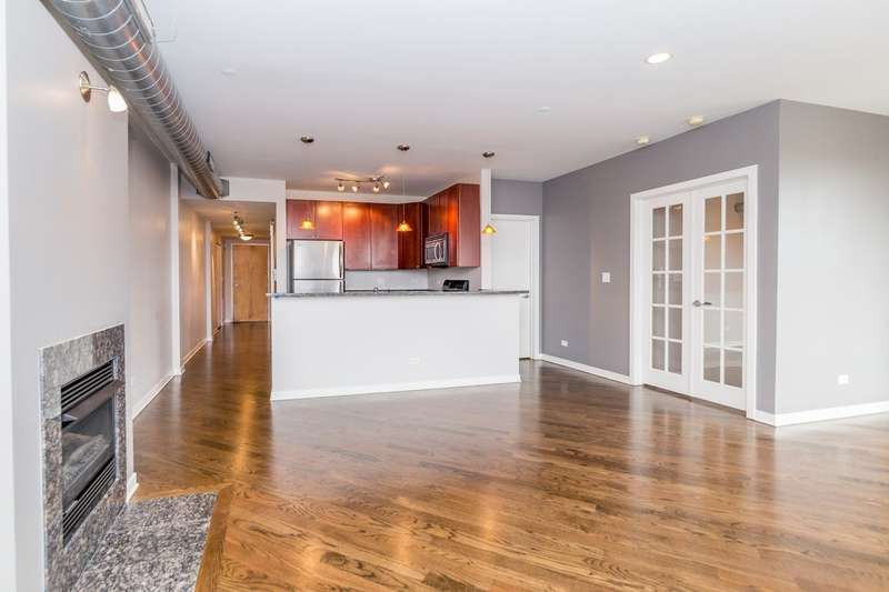 This top floor 2-bed/2-bath corner condo is available for rent! The incredible views of the loop skyline highlight this beautiful modern condo in the heart of Albany Park. The large east and south facing windows flood the huge living/dining space with natural light! Enjoy cozy evenings by the fireplace. The modern kitchen features a breakfast bar and 42 cabinets, stainless steel appliances, and granite countertops. Come see the huge primary en-suite bedroom that boasts a bathroom with double vanity and oversized spa shower. Hardwood floors throughout, in-unit washer/dryer, large outdoor patio, heated garage parking included! Well maintained and professionally managed building, less then a mile to the Kimball Brown Line, quick access to the Kennedy Expressway. Walk to bars, restaurants, and entertainment!