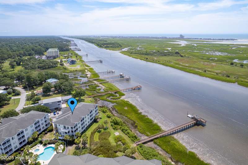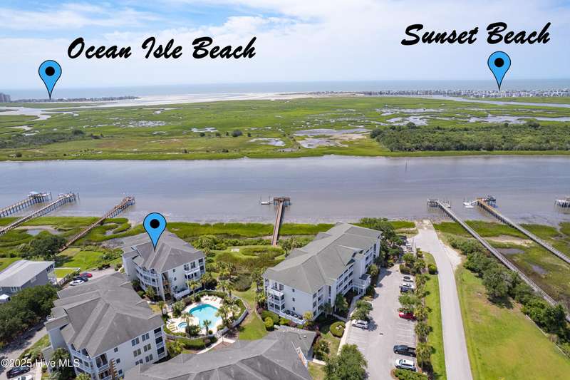 Welcome to your dream coastal retreat with expansive intracoastal waterway and ocean views from all living areas, main bedroom and covered screened balcony. This top floor 3-bedroom, 2-bath open-floorplan condo offers the ultimate in waterfront living with all the amenities you desire for coastal living. Perfectly located just a short distance from two of the best rated beaches, desirable Ocean Isle Beach and Sunset Beach, this turn-key oasis is ideal for boaters, golfers and beachgoers. Enjoy the community waterfront swimming pool and jacuzzi after a day at the beach, fishing, or golfing at one of the many local championship golf courses.The condo community features convenient elevator service leading to a one-level living resort-like space that ensures effortless accessibility and comfort. Upon entry you are greeted with vaulted ceiling LVP flooring leading out to the impressive waterway views. The kitchen is equipped with solid surface countertops, sleek stainless-steel appliances and a long bar seating area ideal for entertainment. The two bathrooms feature tile flooring and a double sink vanity in the main bathroom. Relax and unwind on your private balcony where you can take in stunning sunrises and serene waterway views with ocean views off in the distance. Boats of all sizes will be in sight from your living areas while motoring or sailing down the intracoastal waterway. Whether you're looking for a lucrative rental investment, a relaxing second home, or a place to call your own full-time, this condo is a rare find. Don't miss out on the chance to make this coastal paradise your own.