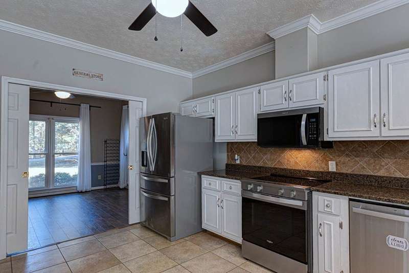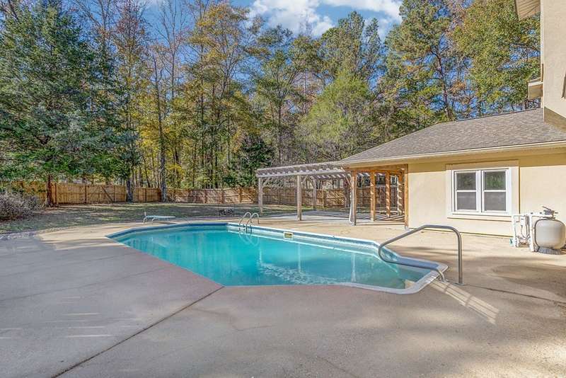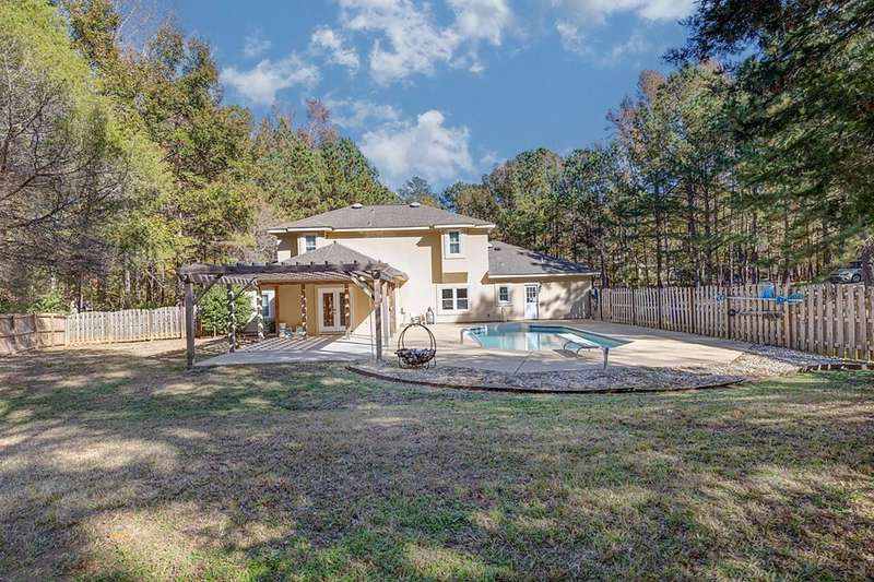 This substantial five-bedroom, three-and-a-half-bathroom residence offers a private 1.5-acre retreat with close access to local conveniences. The main level offers a spacious living area and an exclusive primary suite that includes an adjoining den/office. This flexible space is ideal for a home office, fitness studio, or library. Upstairs, you will find four generously sized bedrooms and two full bathrooms. The spacious, fully appointed kitchen adjoins a dining room, currently utilized as an extensive walk-in pantry. The exterior grounds are fully fenced and boast a private, in-ground swimming pool for seasonal enjoyment. A dedicated storage outbuilding keeps tools and equipment organized. This property's rare combination of size, privacy, and upscale amenities near the town center makes it a genuinely distinctive market offering.