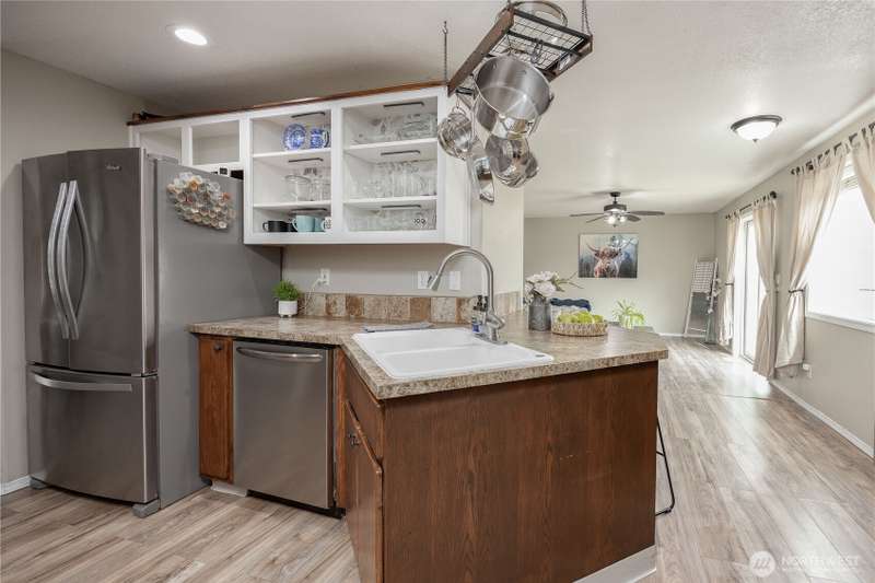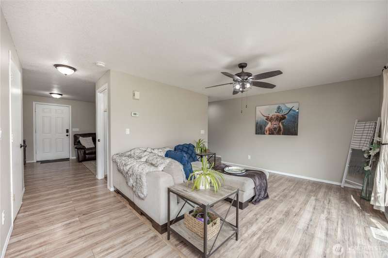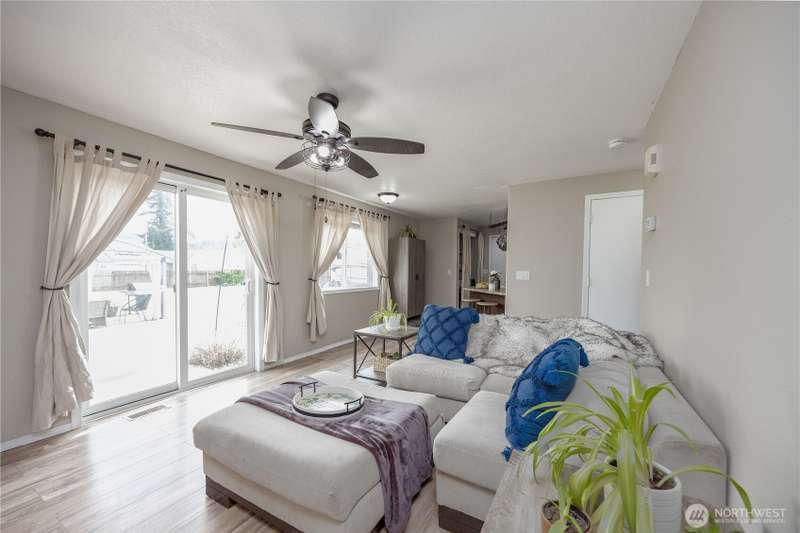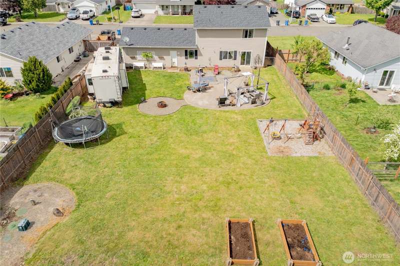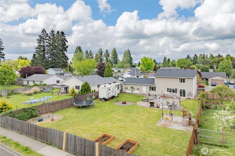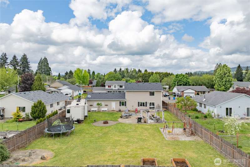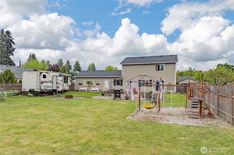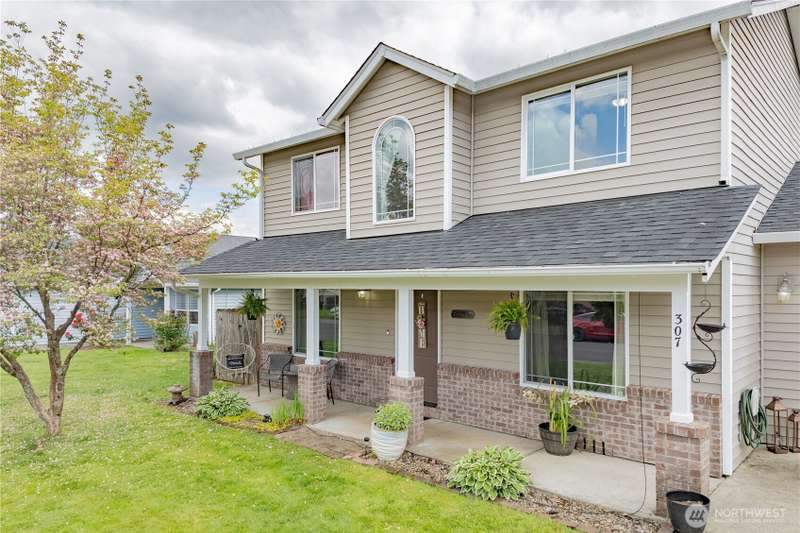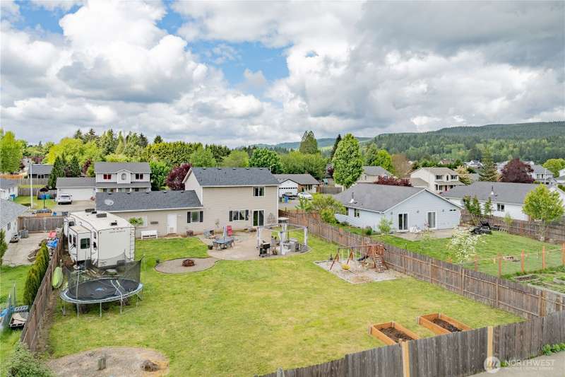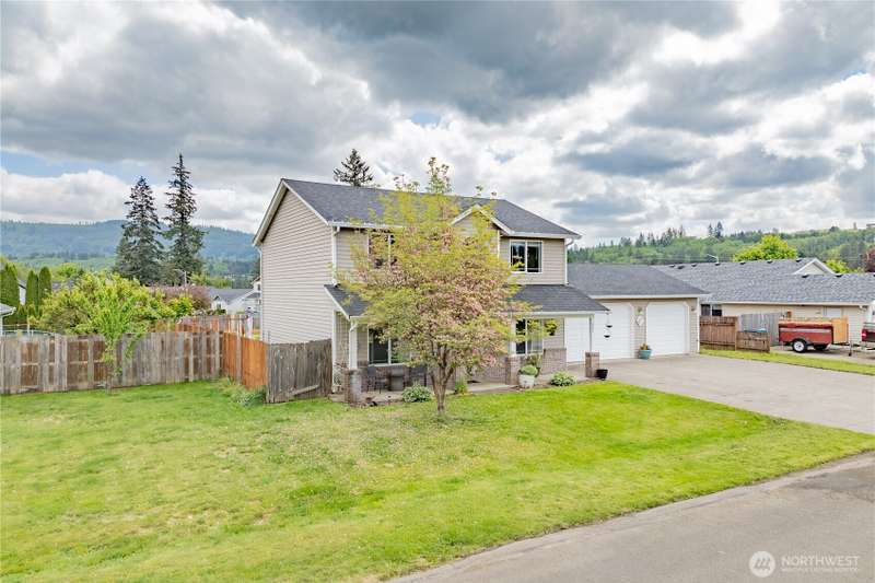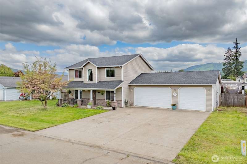 Tucked away on a quiet cul-de-sac in the heart of Yacolt sitting on a spacious 0.29-acre lot. Fully fenced yard, custom concrete patio offering an ideal space for outdoor entertaining and relaxing with mountain views. Thoughtful layout. The kitchen, situated between the dining and living areas, truly serves as the heart of the home with double oven, tile backsplash, laminate flooring, SS appliances. Upstairs, a versatile flex space for a home office, playroom, or nursery. Large sized primary suite & bedrooms. Forced air and BRAND NEW heat pump ensure energy-efficient comfort year-round. Roof replaced in 2019. 3 car garage ample storage space, & RV parking. 1 year AHS Shield Complete warranty included!